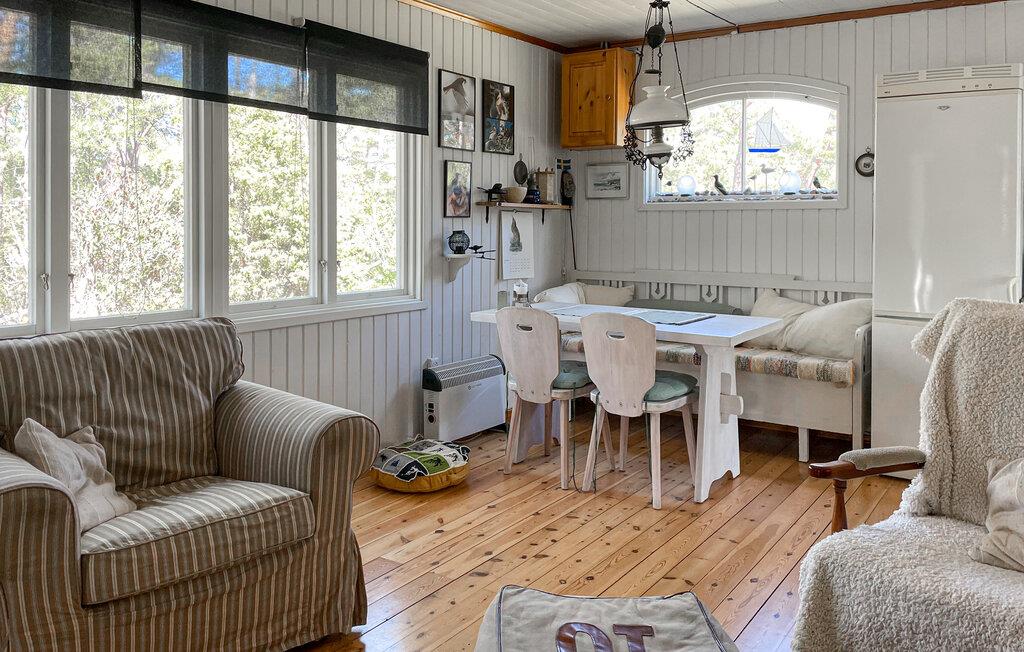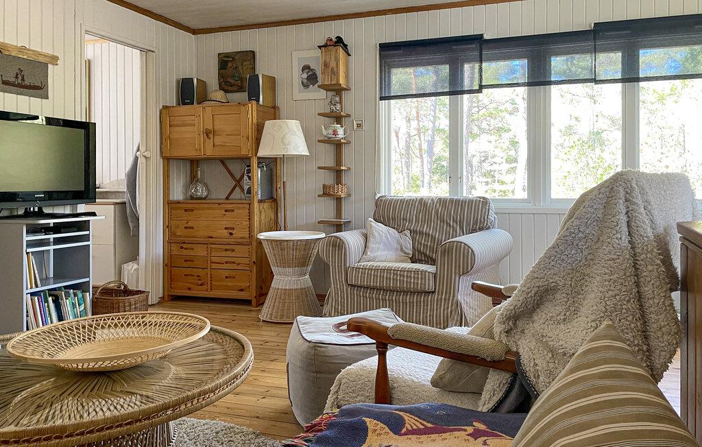 Omgivet af en skov inviterer dette charmerende feriehus jer til en idyllisk ferie med familien. Sæt jer ned i det hyggelige siddeområde til hyggelige måltider og hyggelige spilleaftener, og brug den komfortable sofa til afslappende læsning, mens den norske brændeovn sørger for ekstra komfort.