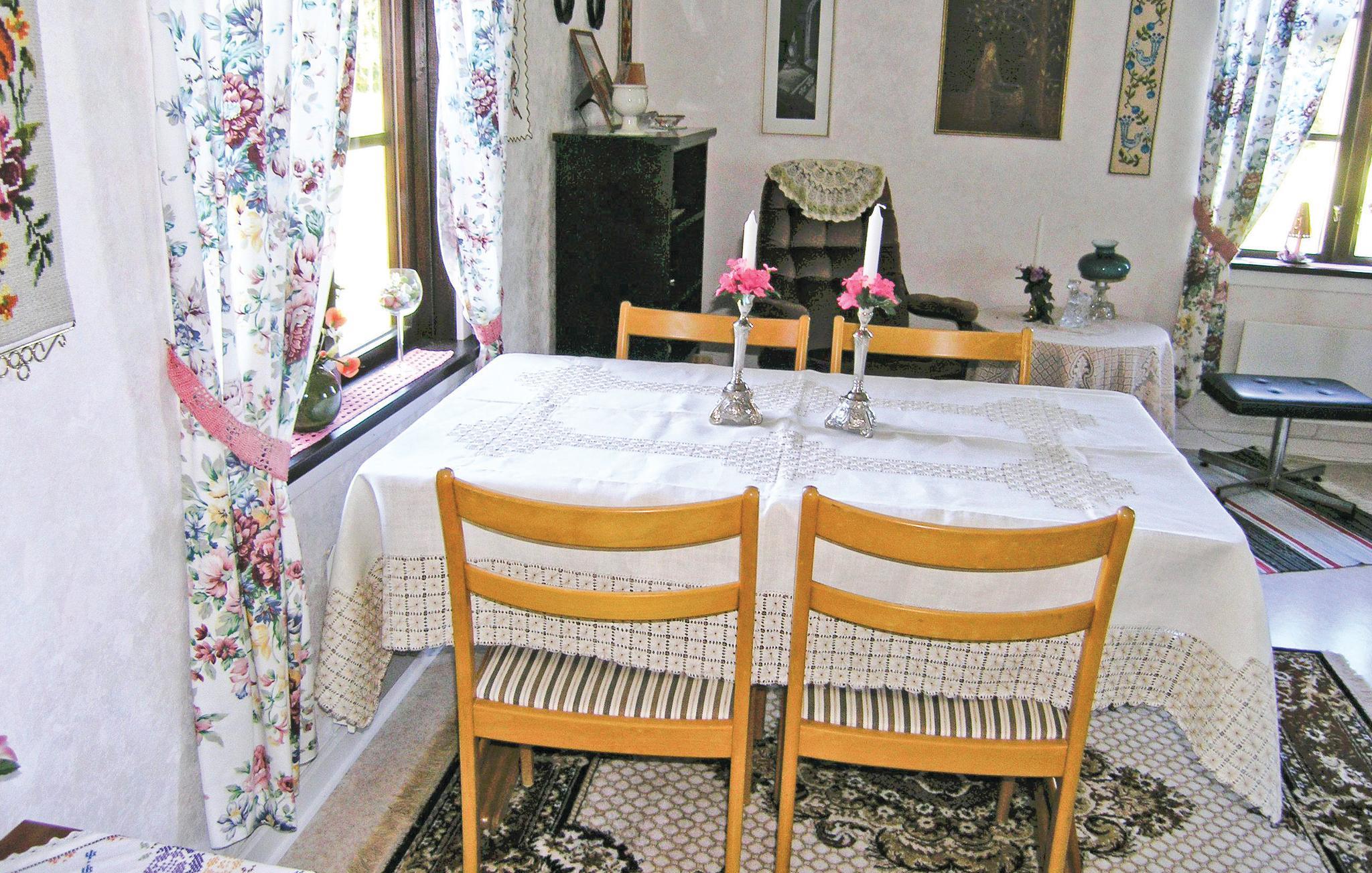 Nyd den hyggelige atmosfære i jeres feriehus. Værelserne er indrettet med kærlighed og mange klassiske detaljer, der minder om svundne tider. I stuen sørger en behagelig sofagruppe for hyggelige stunder, mens I slapper af med en bog eller en kop te. I spisestuen kan I nyde jeres måltider sammen og lade blikket glide gennem vinduerne ud over det grønne landskab. Også køkkenet er indrettet i traditionel stil og udstyret med alt, hvad I behøver for selv at tilberede jeres måltider.