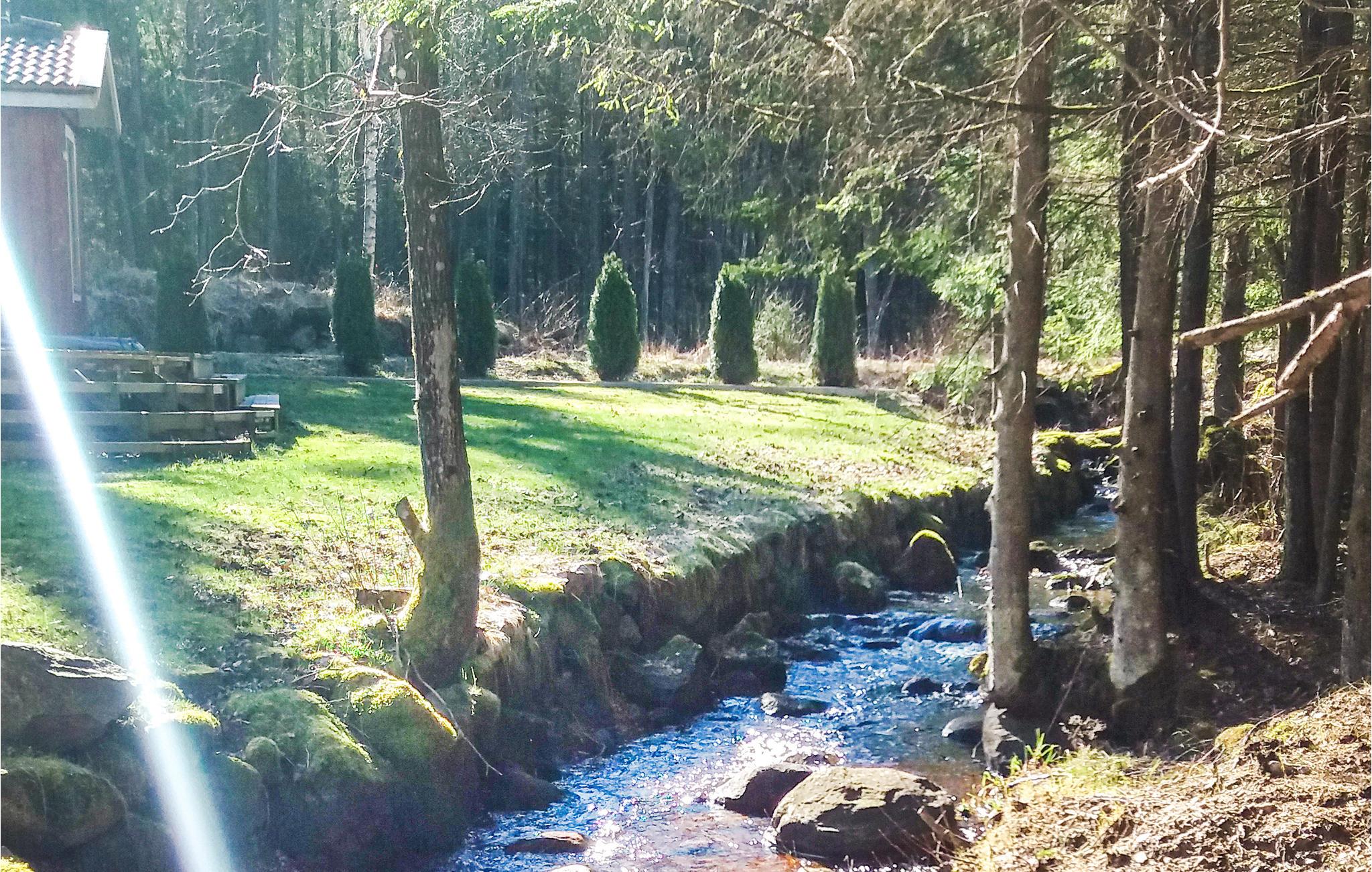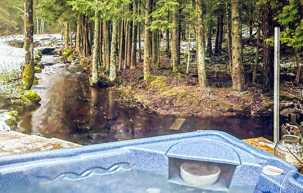 To rummelige træterrasser tilbyder en smuk udsigt over den fredelige have. Tilbered lækre retter på gasgrillen og lyt til pludren af ??den romantiske strøm, der pryder jeres idylliske naturejendom.