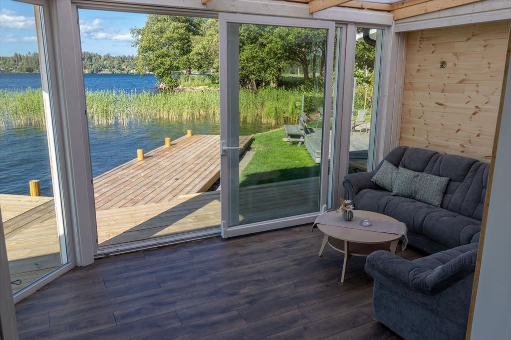 Feriehuset Sjöbacka ligger idyllisk nær Vreta Kloster, cirka 23 km nord for Linköping i regionen Östergötland, direkte ved bredden af søen Norrbysjön. Søen er en del af Göta-kanalen og indbyder til aktiviteter som svømning, fiskeri eller hyggelige bådture. Via komfortable trapper kan du gå direkte i det klare vand, mens vinterhaven med sine 2,5 m høje panoramavinduer giver en vidunderlig udsigt over søen, selv når vejret ikke er optimalt.