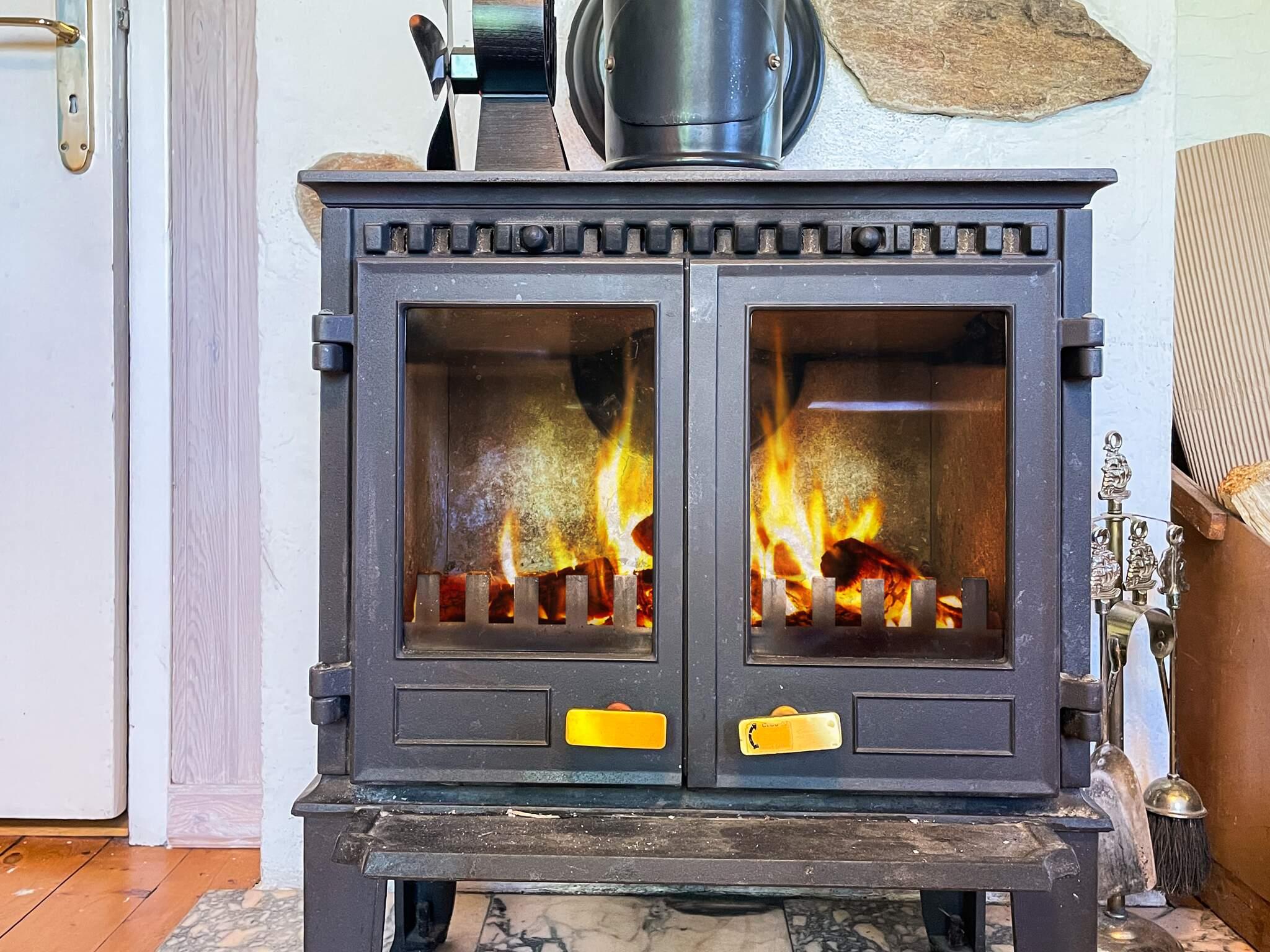 Här finns två sovrum – ett med dubbelsäng och ett med två enkelsängar – samt ett vardagsrum med skön soffa, TV och en braskamin som sprider värme och stämning under kyligare kvällar. Köket med matplats är fullt utrustat för frukost och enklare måltider och bjuder in till långsamma morgnar i lantlig ro.