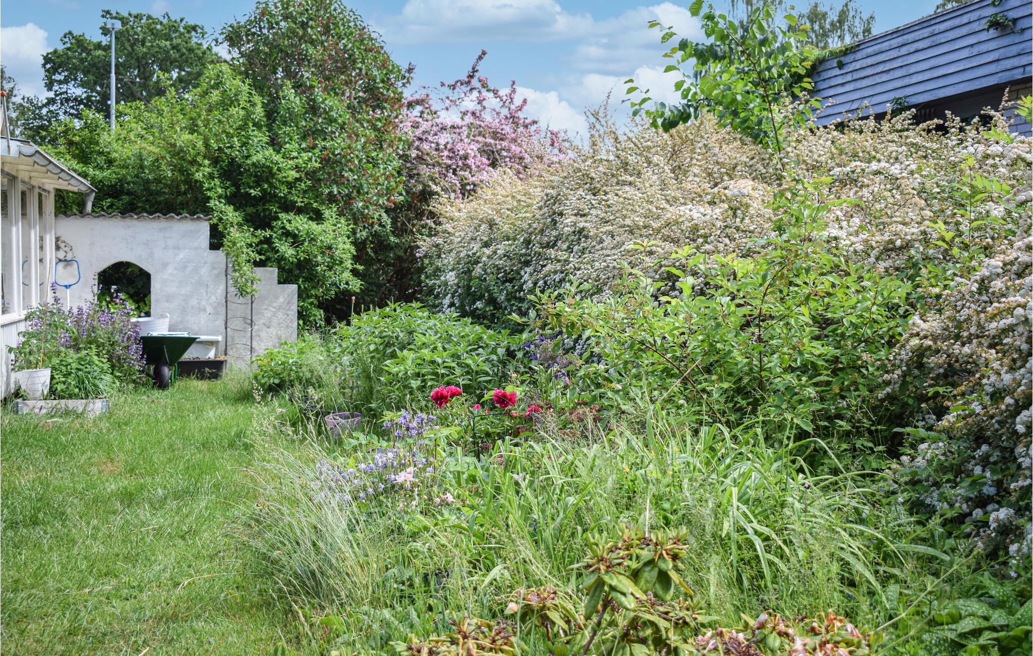 Feriehuset ligger i et roligt og grønt område med stor have.