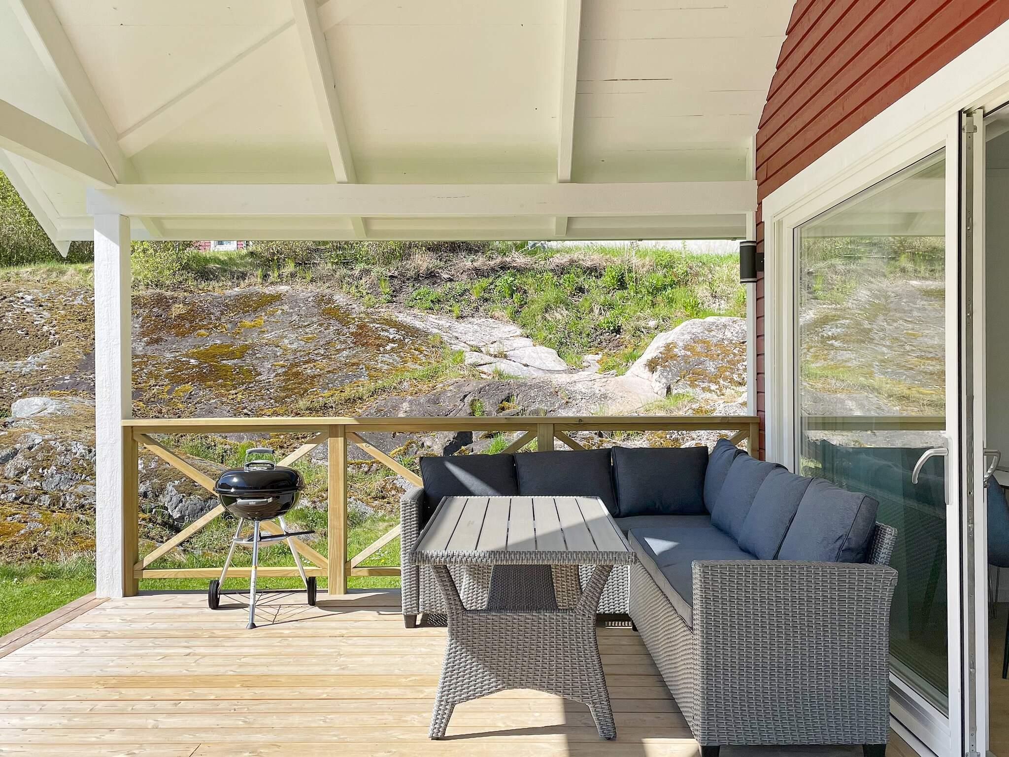Stugan står på samma tomt som ägarens hus men ni disponerar över delen i anslutning till stugan. Elstängsel förekommer på delar av tomten. Ni når ön via avgiftsfri bilfärja från Östanå färjeläge.