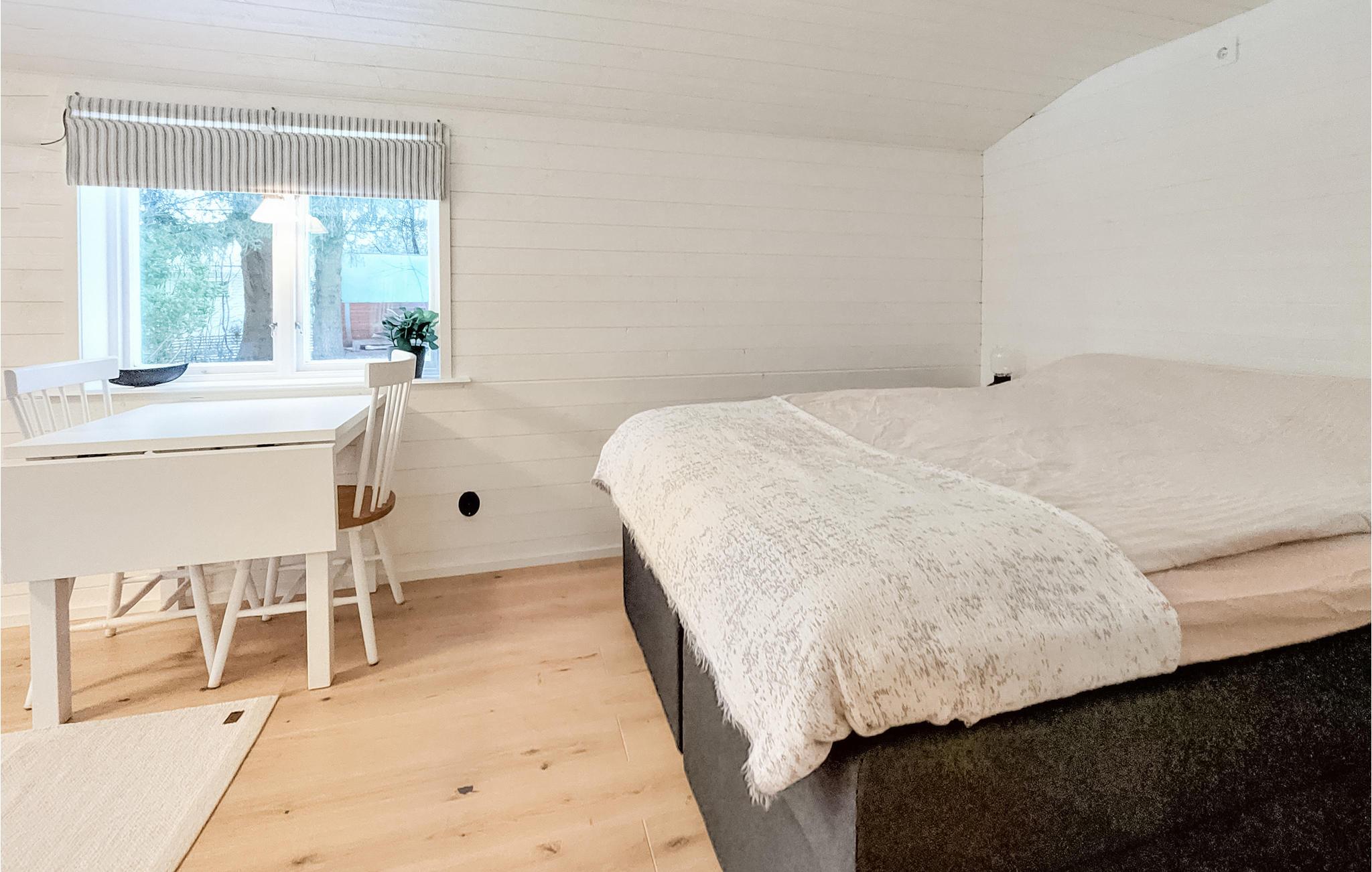 Dette funktionelle træhytte er en god base for en aktiv parferie. Tilbring romantiske dage i dejlig natur. I løbet af dagen kan I opleve det uforlignelige landskab til fods, på cykel eller med båd. Her finder I både fremragende fisketure og skønne vandrestier. Hop ud i den skønne sø og slap af i den brændefyrede sauna før middag.