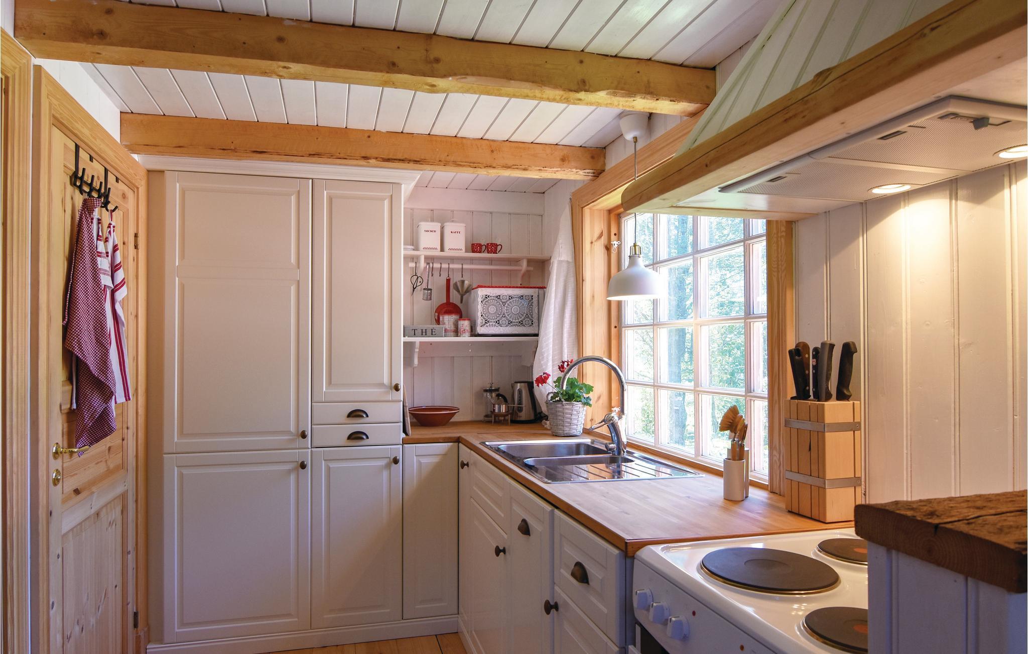 Her er ikke langt fra skov og eng. I denne egn kan I alt efter sæson plukke bær og svampe. Der er kun fem minutter til havet, hvor I kan bade og tage på fisketure. Der er også gode fiskesteder indenlands, hvis I foretrækker ferskvand. Feriehuset har to soveværelser og et loft med sovepladser. Mange små detaljer gør huset unikt.