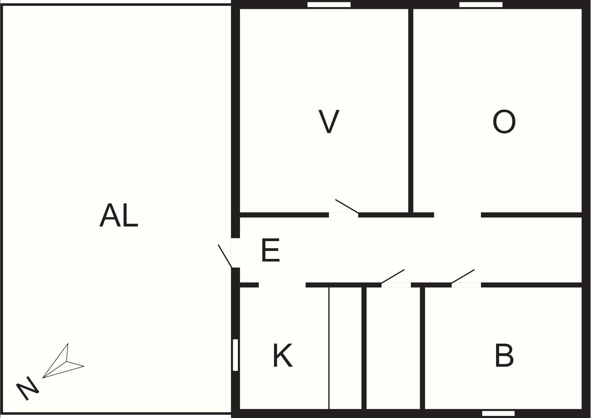 Pantry: El-komfur, køleskab m/frostboks, mikroovn, emhætte, kaffemaskine