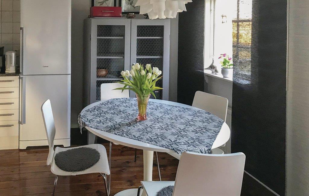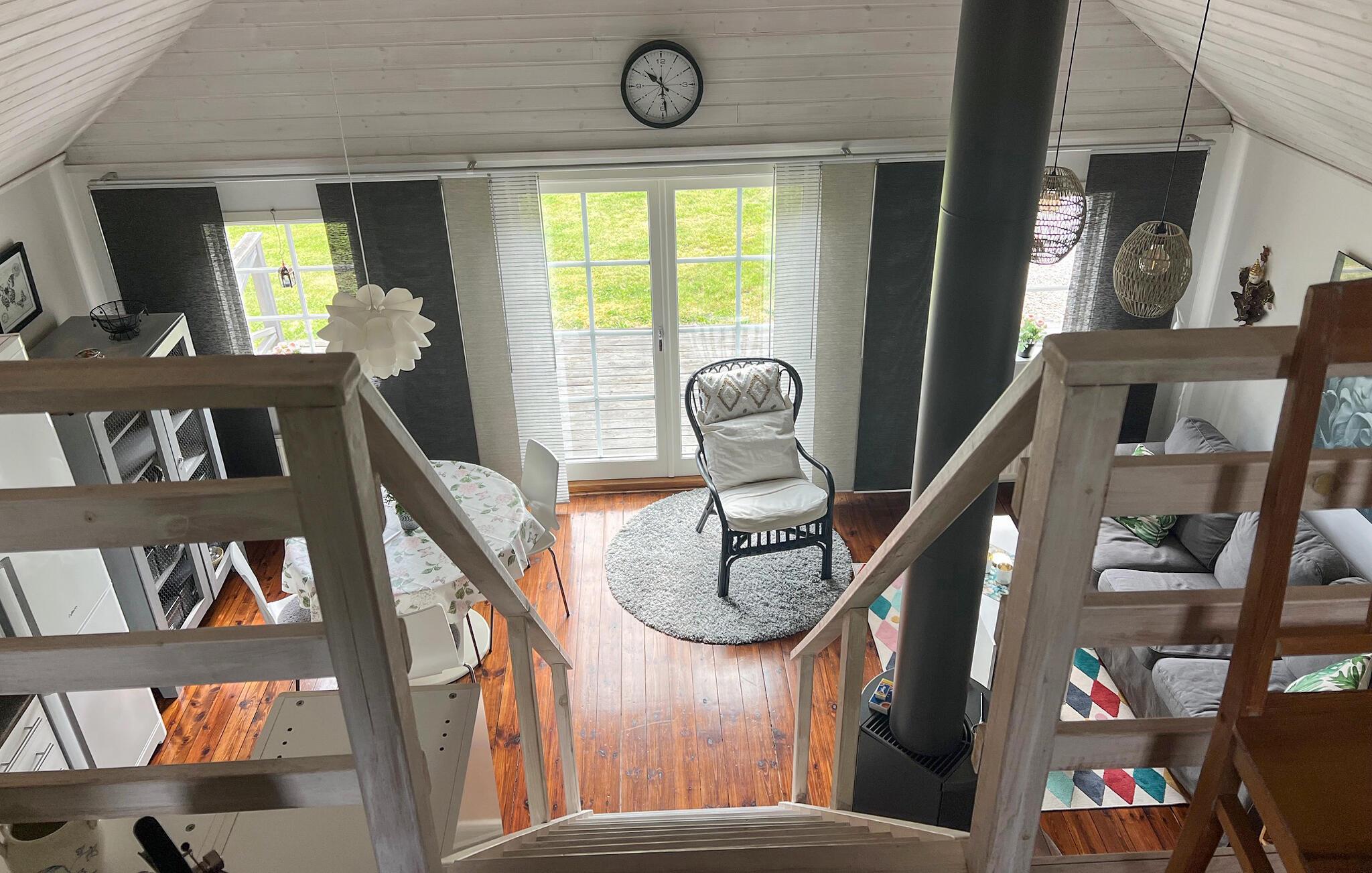 Feriehus i Mästerby på Midtgotland. Huset har en hems med en stejl trappe, så huset er ikke så godt for familier med små børn eller personer, som har svært ved at klatre. Åbent mellem køkken og dagligstue. 1 km fra huset ligger Mästerby enge, hvor I finder høje ege, som giver skygge på varme sommerdage. Her har man siden midten af 1800-tallet passet græsset, så kreaturerne kunne få mad om vinteren. Når anemonen er afblomstret, rives engen, for at græsset kan høstes bagefter, omkring den 10. juli, og efter en uges tørring kan man lægge det på høloftet. Her yngler flere forskellige fuglearter, også Gotlands landskabsfugl halsbåndsfluesnapperen. Her findes 150 forskellige slags planter, hvoraf nogle er truede. Om foråret blomstrer flere forskellige slags blomster, også orkideer. Björhaga er den nærmeste badestrand, og her er der også en udendørs pool, som er åben mod entré. Dertil har I 9 km. På vejen passerer I flere gårdbutikker, som har egne grønsager og andre gotlandske produkter til salg. Visby 24 km.