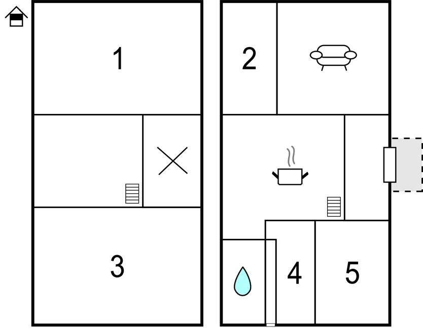 Soveværelse (nr. 5) - 2 Sovepladser. (Enkeltseng(e)).