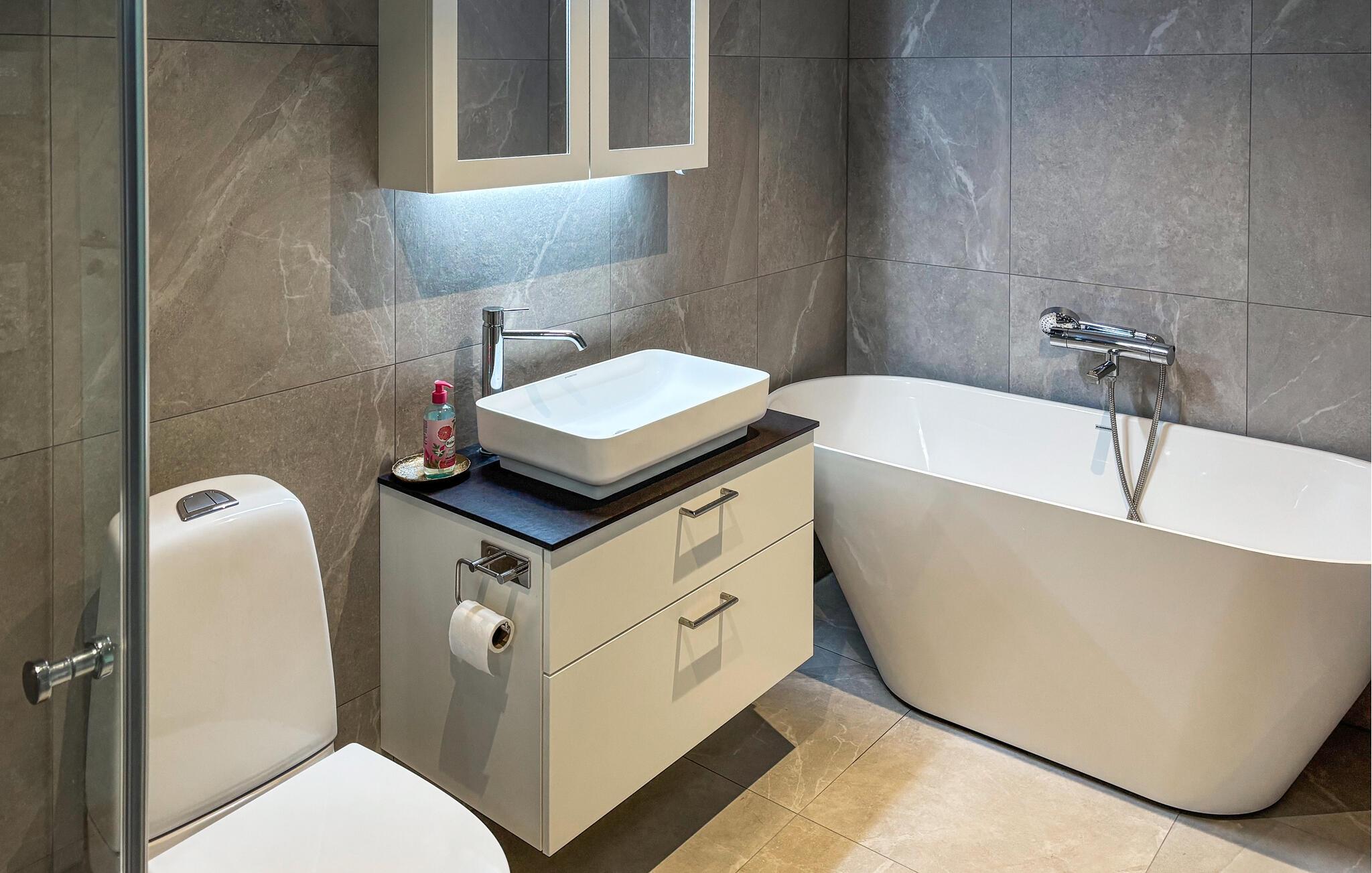 Badeværelse (nr. 1) - WC. Varmt og koldt vand. Bruser og badekar