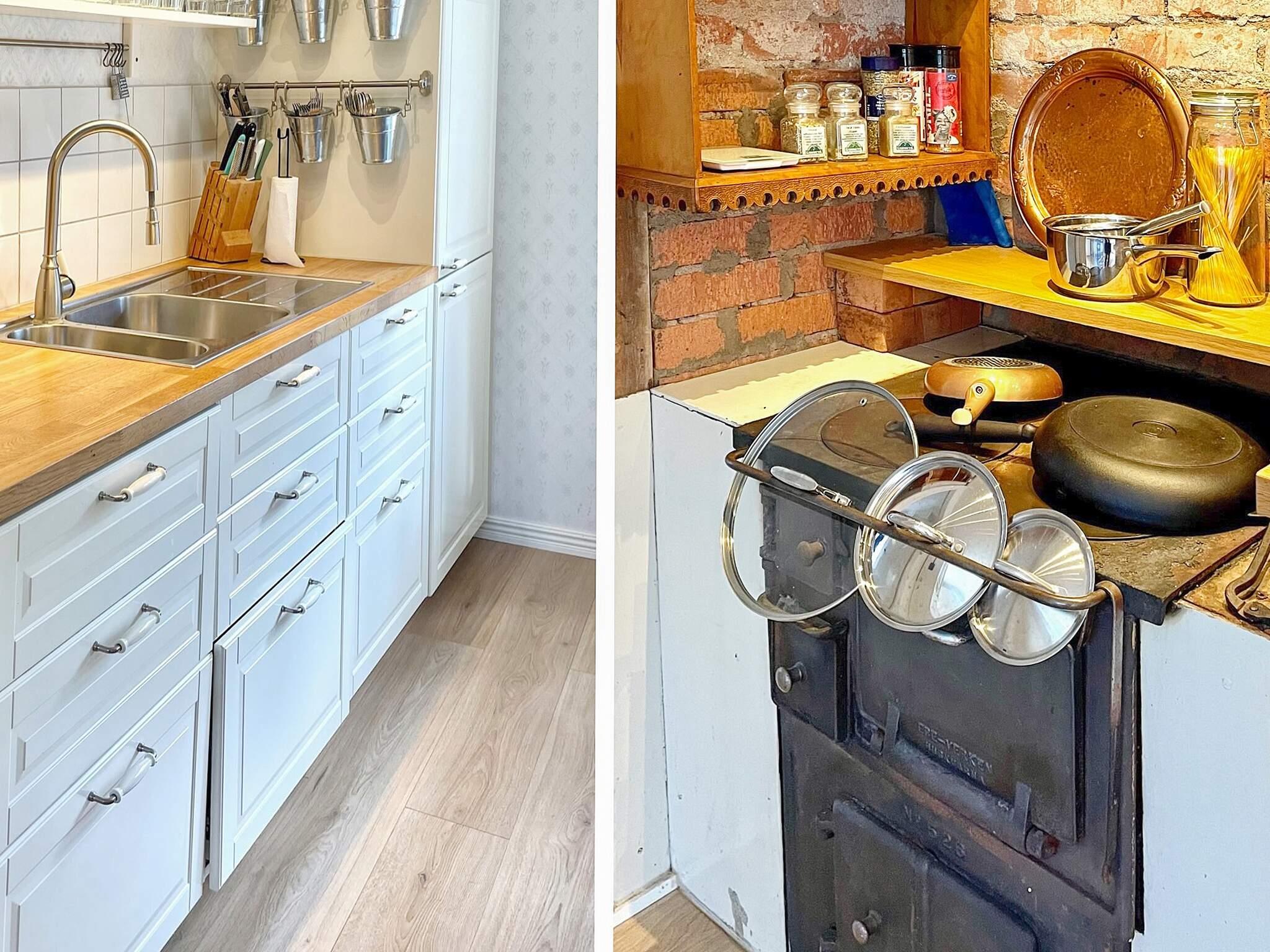 Torpet är i fint skick med en stor altan både med och utan tak där det finns utemöbler och grill. Här kan ni se sjön vackert glittra i fjärran. Ni har ett vackert lantligt kök med matplats, diskmaskin samt det mesta ni kan behöva. Matsalen är vacker och stilfullt möblerad. I det stora vardagsrummet finns en rymlig soffa samt tv. Soffan kan bäddas om med en madrass för en extra bädd om så behövs. En trappstege tar er upp på andra våningen där det finns tre sovrum, ett öppet med dubbelsäng samt två med vardera en enkelsäng. I trädgården finns studsmatta samt fotbollsmål.