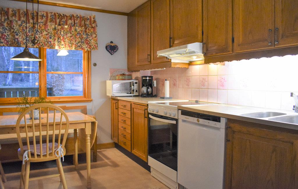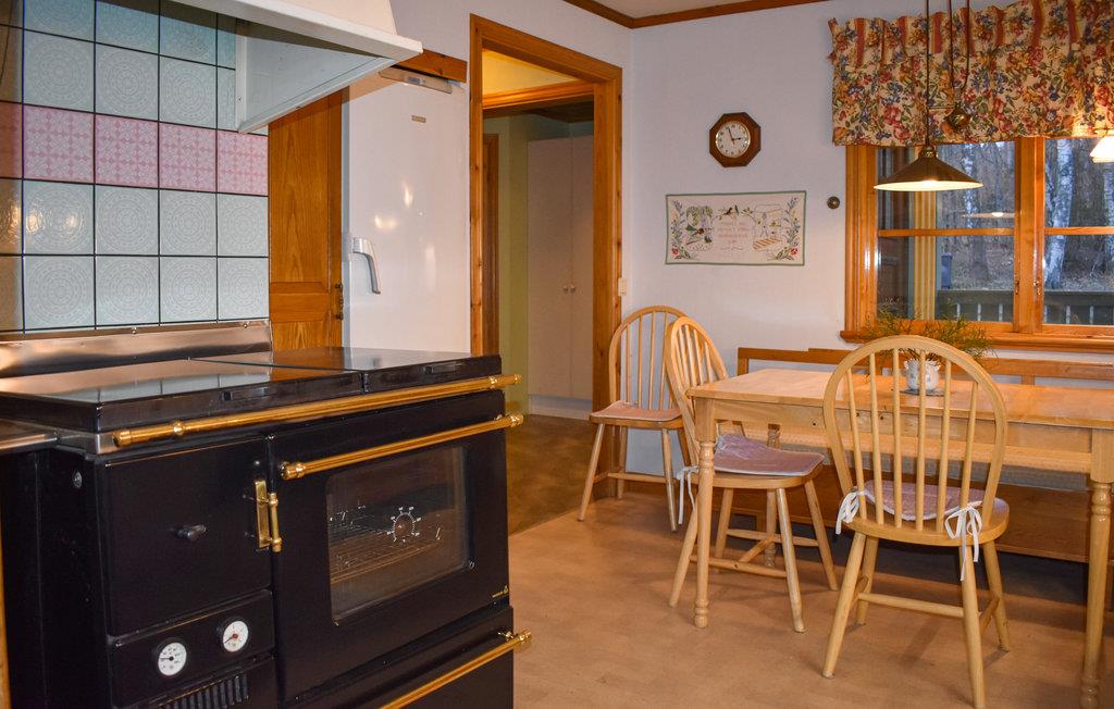 Det yderst charmerende gule træhus tilbyder to soveværelser med to enkeltsenge hver og to ekstra senge i stuen, så der i alt kan være op mod seks personer. To kæledyr er også velkomne i feriehuset. På kølige aftener spreder kakkelovnen både varme og en hyggelig atmosfære.