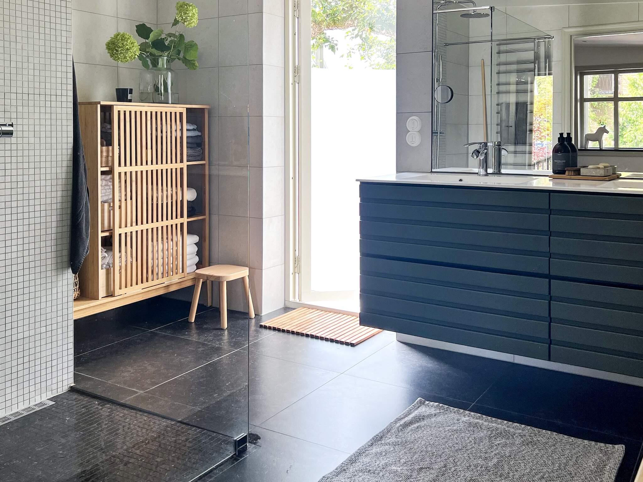 Inomhus möts du av en mycket rymlig hall som leder in till ett läckert badrum med dubbeldusch och dörr ut till altanen. Vidare in i huset har du öppen planlösning mellan kök och vardagsrum. Älskar du laga mat och sitta tillsammans under långa kvällar har du kommit rätt.