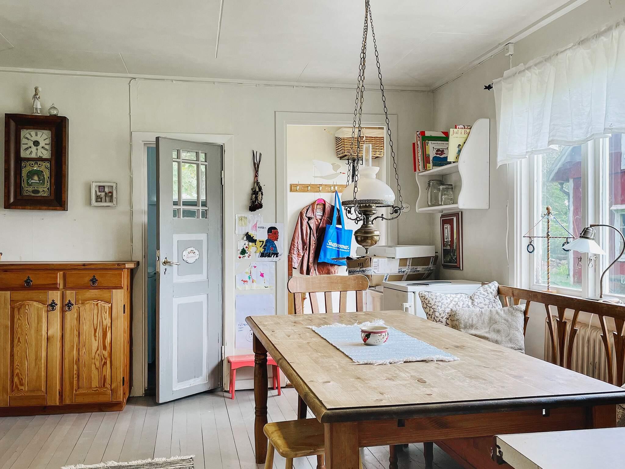 Huset har nog det mesta man kan behöva för sin vistelse, det är biokemisk toalett separett i badrummet men ändå ljust och fräscht. Köket är lantligt med gott om matplats och sällskapsyta. Här finns kyl/frys, diskmaskin och mikrovågsugn. Vardagsrummet har en soffgrupp med tv-hörna. I sovrummet finns en dubbelsäng på 180 cm och en våningssäng. Du går in på baksidan av huset så kommer du rakt i en mindre hall och köket till vänster. Öppnar du upp dörren på framsidan ser du trädgården omgärdar av en stengärdesgård där korna betar på andra sidan.