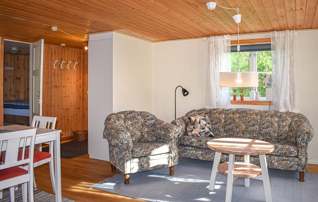 Dette praktiske og hyggelige feriehus tilbyder alt, hvad I behøver for en afslappende ferie. Indretningen er funktionel og skaber en behagelig atmosfære. Den åbne opholdsstue lægger op til hyggelige stunder, hvad enten det er ved middagsbordet eller til afslapning efter en oplevelsesrig dag. Køkkenet er veludstyret, så I nemt kan tilberede jeres yndlingsretter. Store vinduer lukker masser af dagslys ind og giver en smuk udsigt over søen.