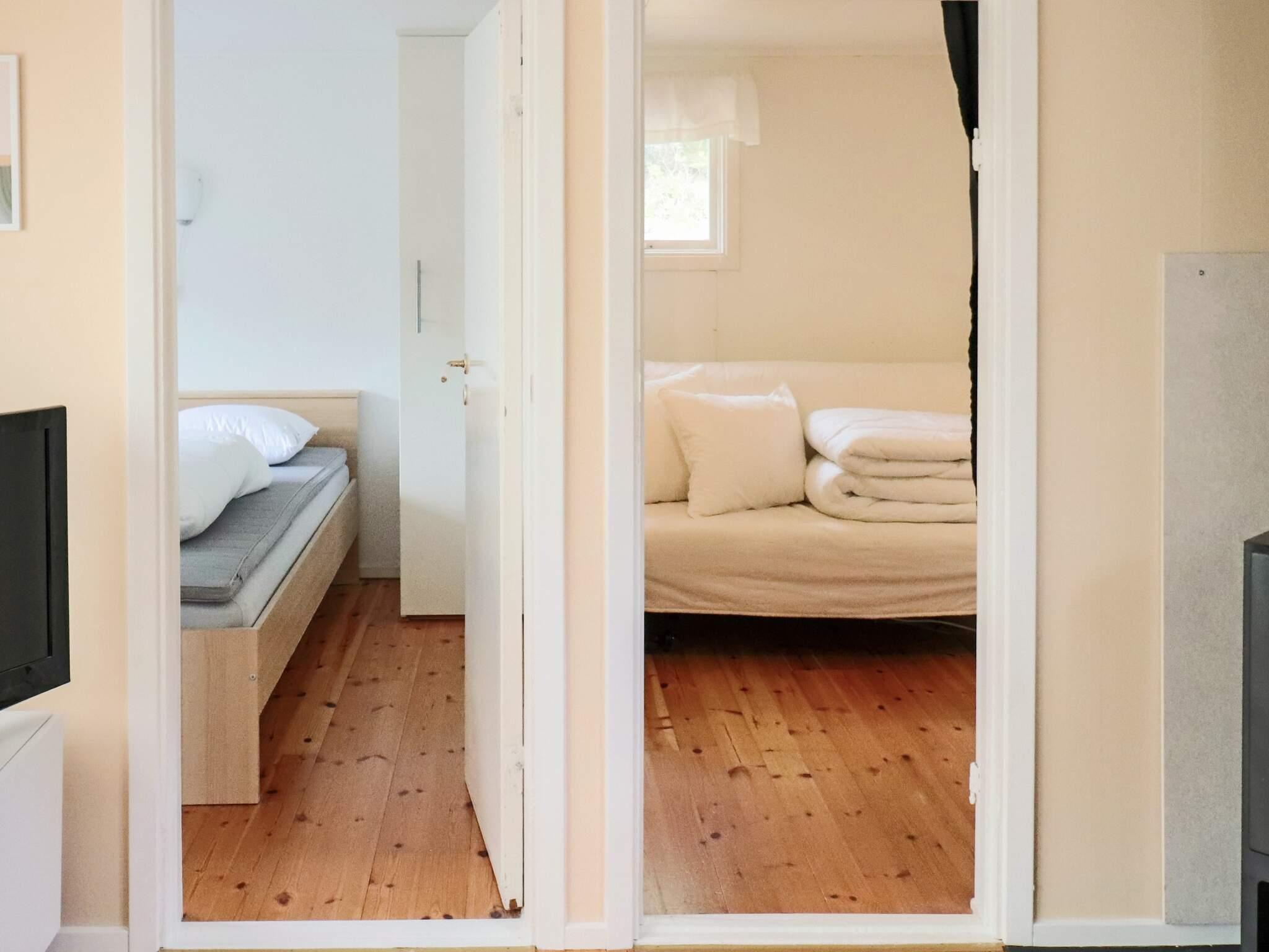 I stugan finns kök med matplats. Badrummet har dusch. Vardagsrummet har en bekväm soffa, modern TV med chromecast samt en braskamin. Härifrån är det utgång till ett behagligt inglasat uterum med ett stort matbord. Det finns ett sovrum med en dubbelsäng och ett med en bäddsoffa för två personer. Den stora terrassen är insyns- och vindskyddad, där njuter ni i bekväma loungemöbler, solstolar och matbord.