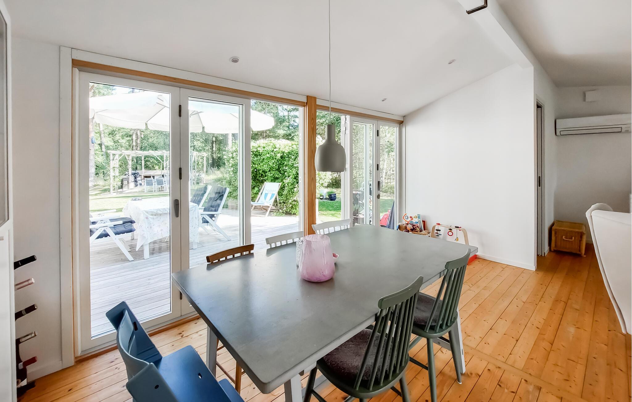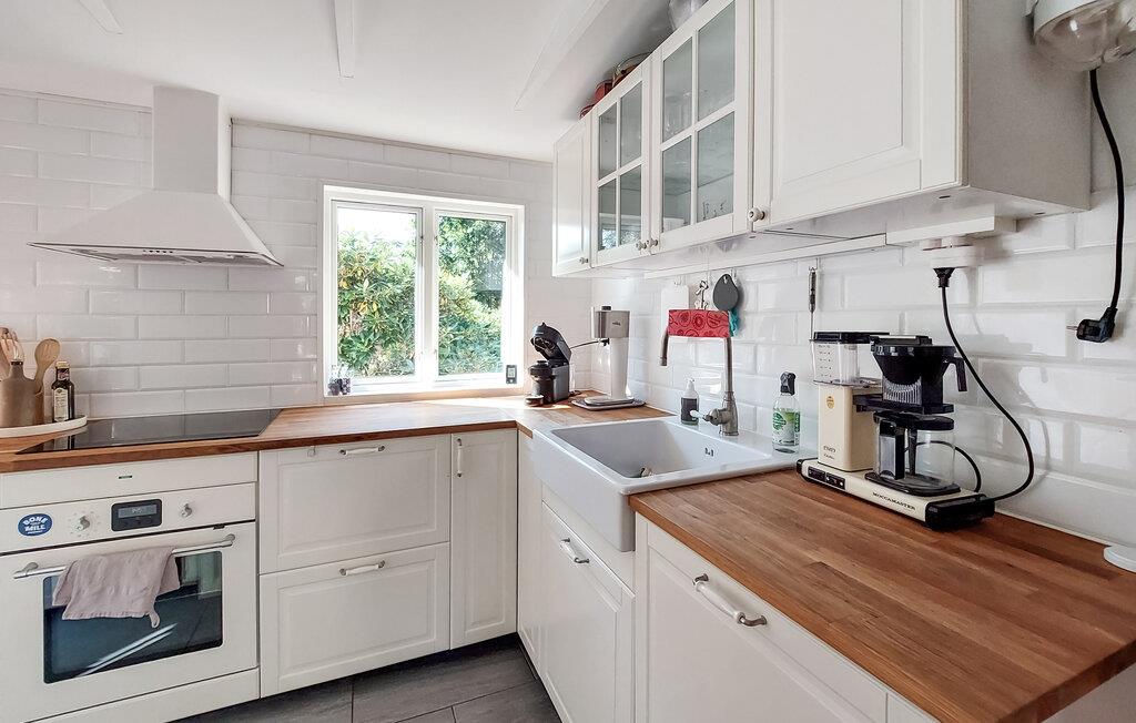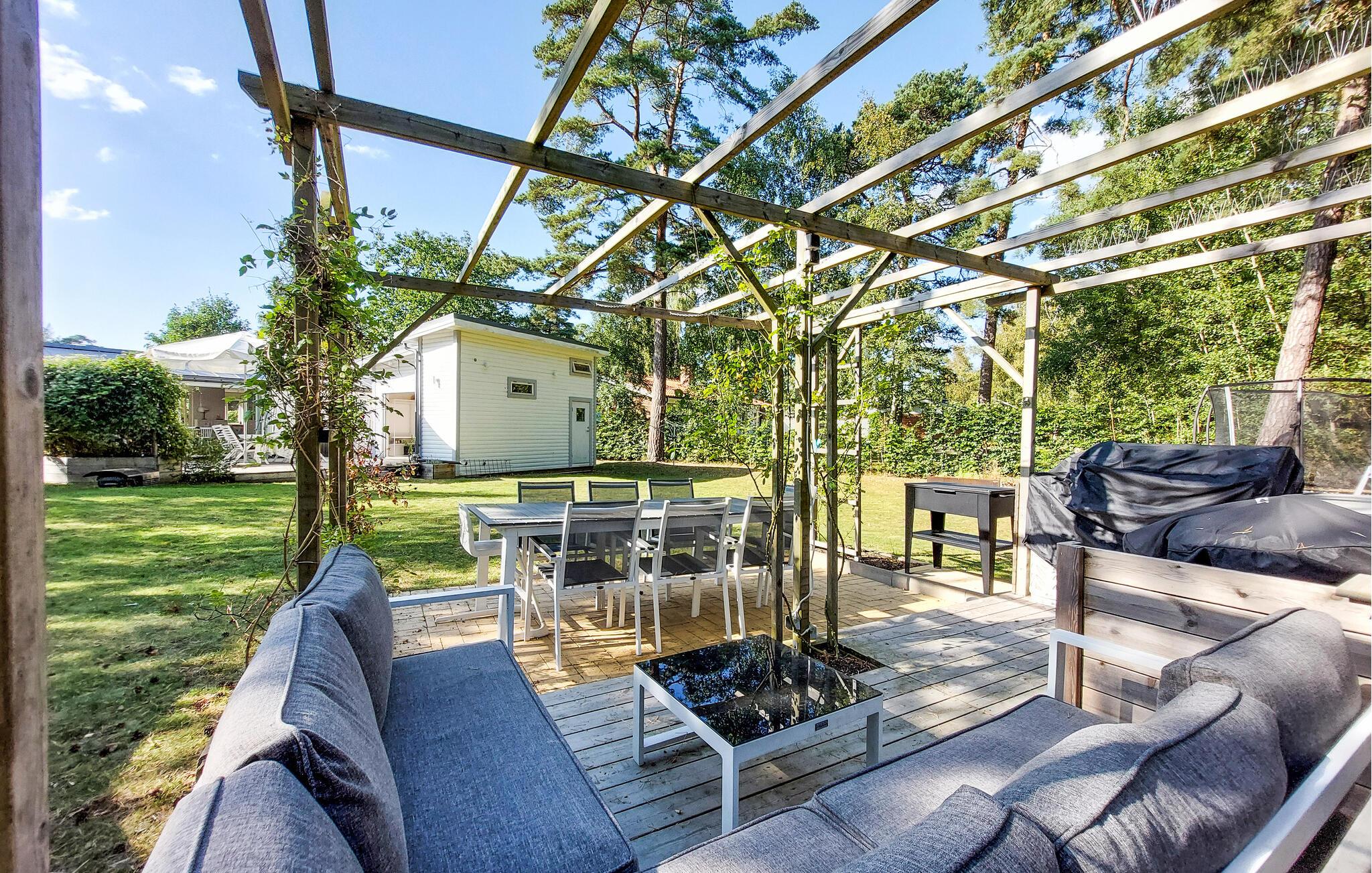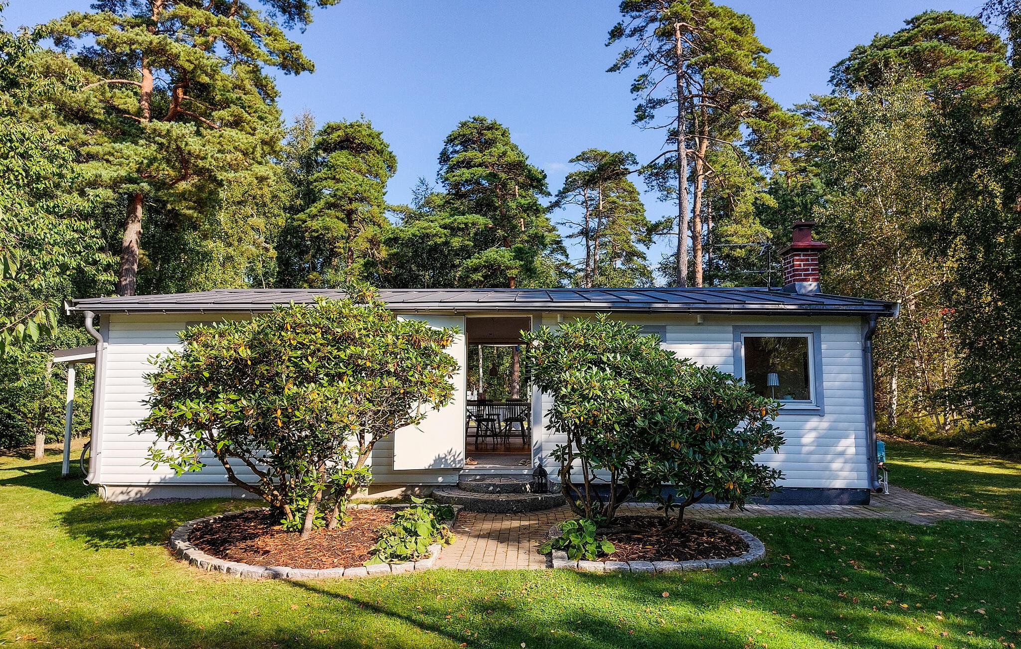 Velkommen til jeres feriehus i Mellbystrand, det ideelle sted til afslapning og kvalitetstid med familien. Nyd solrige dage på den rummelige terrasse, som er udstyret med komfortable møbler og et stort spisebord, perfekt til hyggelige stunder. Den lyse stue med det hyggelige sofahjørne og brændeovnen er ideel til afslappende aftener i en rolig atmosfære. Store vinduer lader masser af lys strømme ind og giver jer en skøn udsigt til den grønne natur. Det veludstyrede køkken gør det muligt at tilberede yndlingsretter og nyde dem i godt selskab.