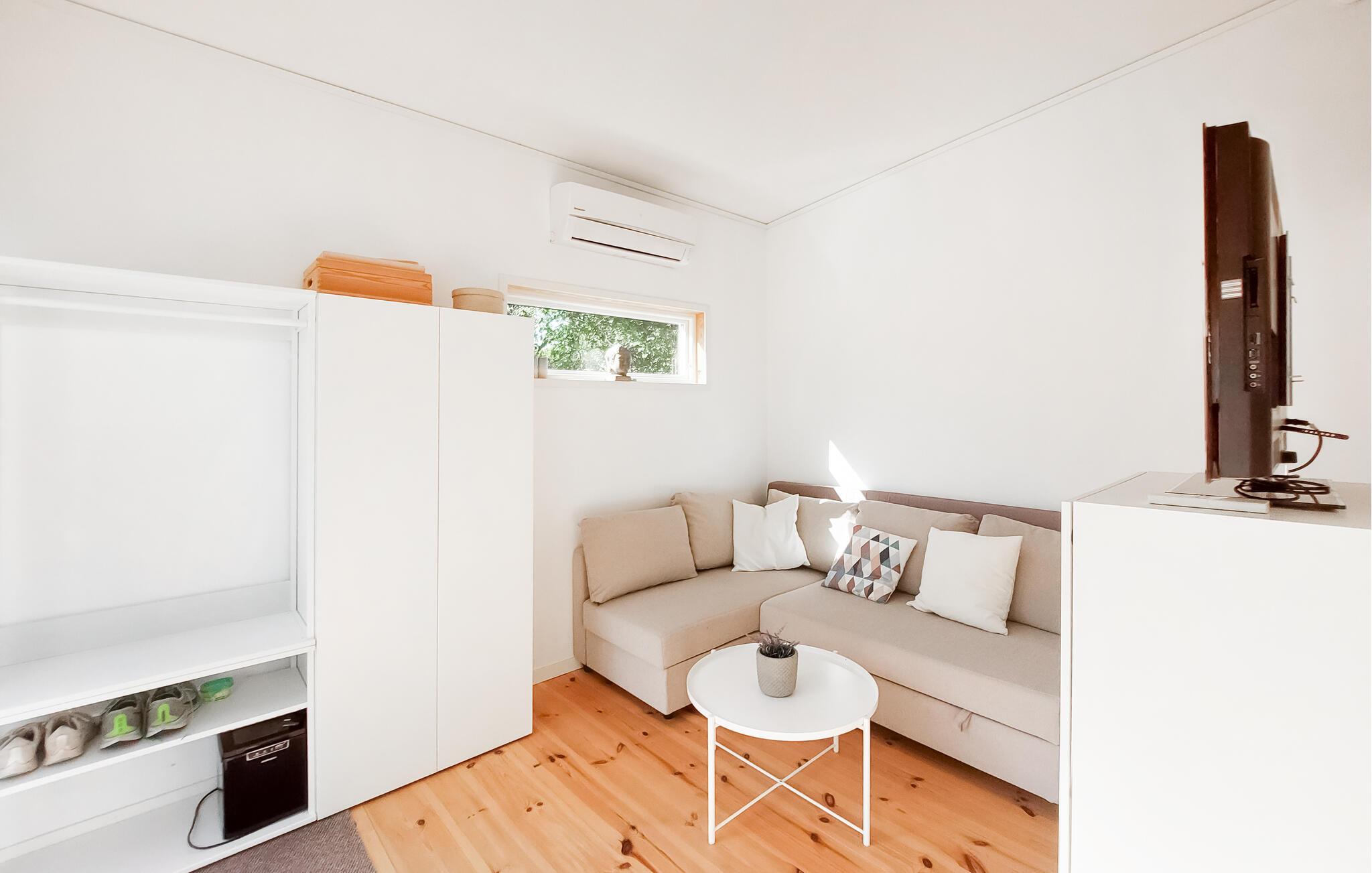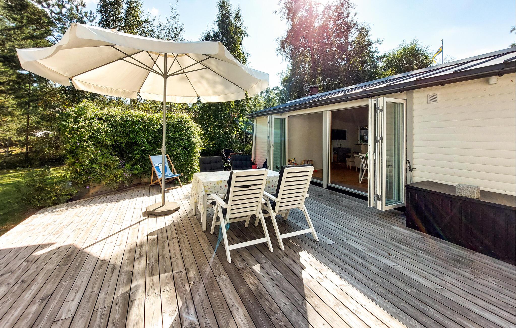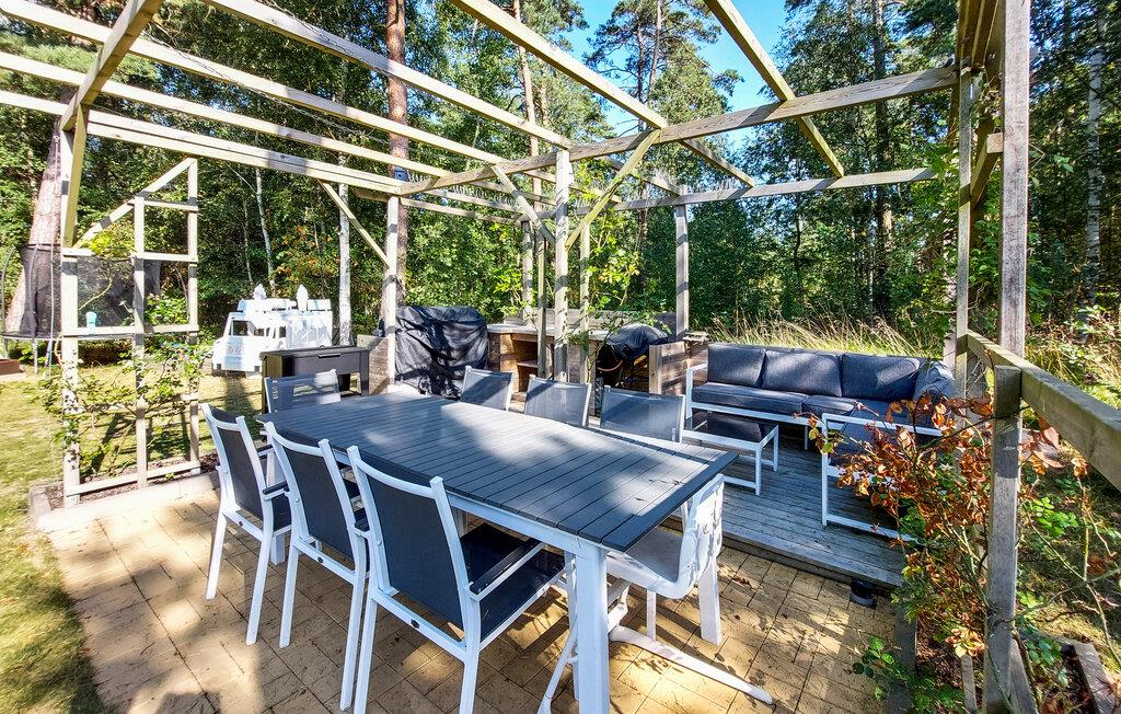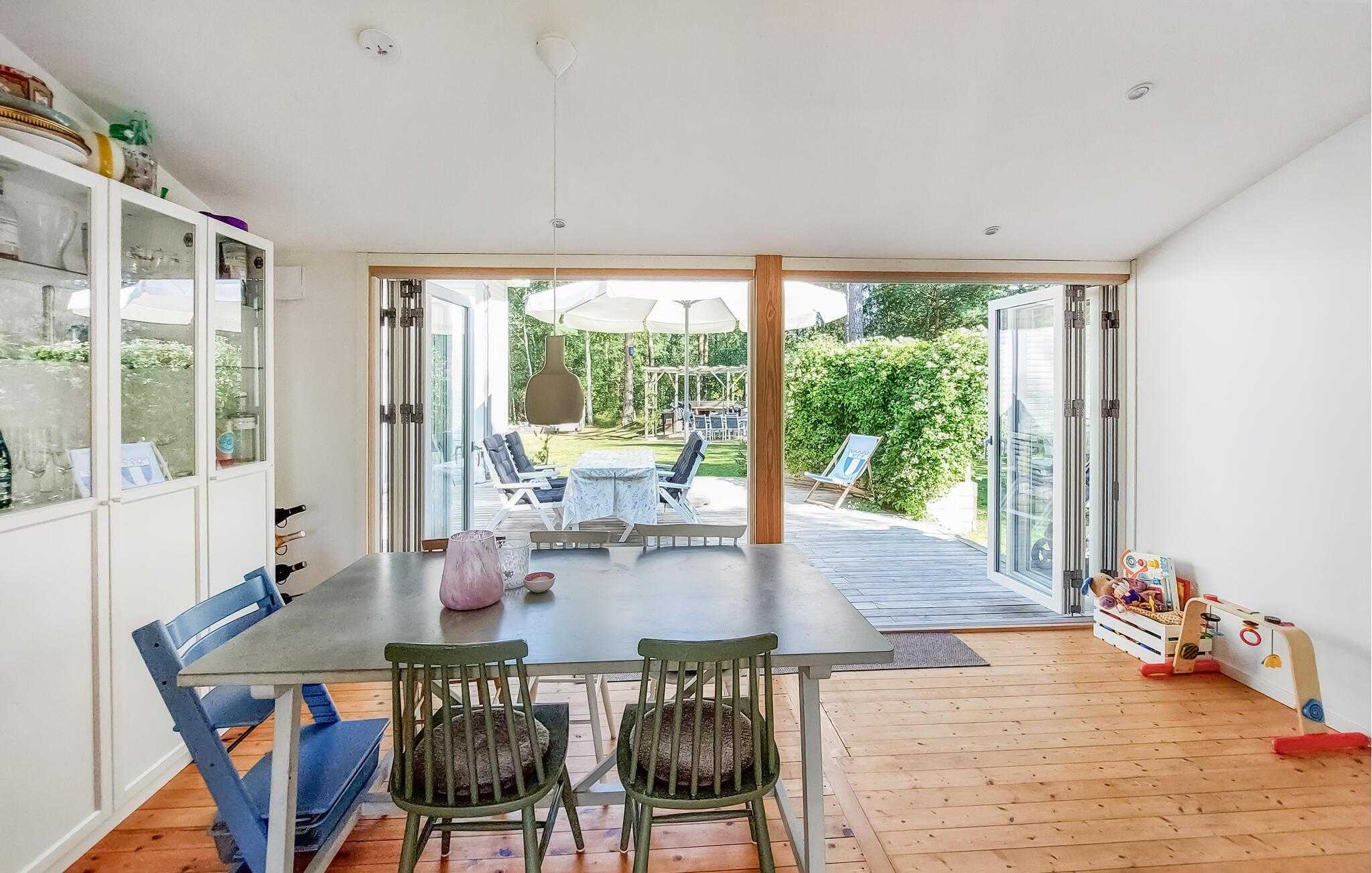 Velkommen til jeres feriehus i Mellbystrand, det ideelle sted til afslapning og kvalitetstid med familien. Nyd solrige dage på den rummelige terrasse, som er udstyret med komfortable møbler og et stort spisebord, perfekt til hyggelige stunder. Den lyse stue med det hyggelige sofahjørne og brændeovnen er ideel til afslappende aftener i en rolig atmosfære. Store vinduer lader masser af lys strømme ind og giver jer en skøn udsigt til den grønne natur. Det veludstyrede køkken gør det muligt at tilberede yndlingsretter og nyde dem i godt selskab.