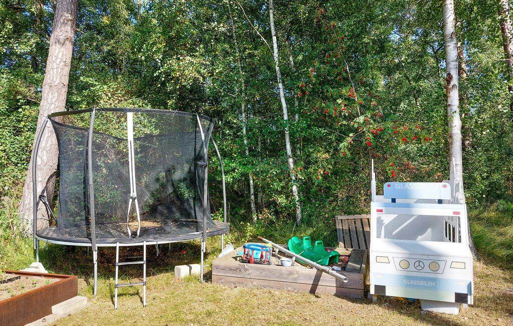 Haven tilbyder også de yngste gæster masser af plads til leg og udforskning. Et trampolin og andre legeredskaber sørger for sjov i det fri. Slap af i en af de hyggelige havestole, mens børnene leger i haven.