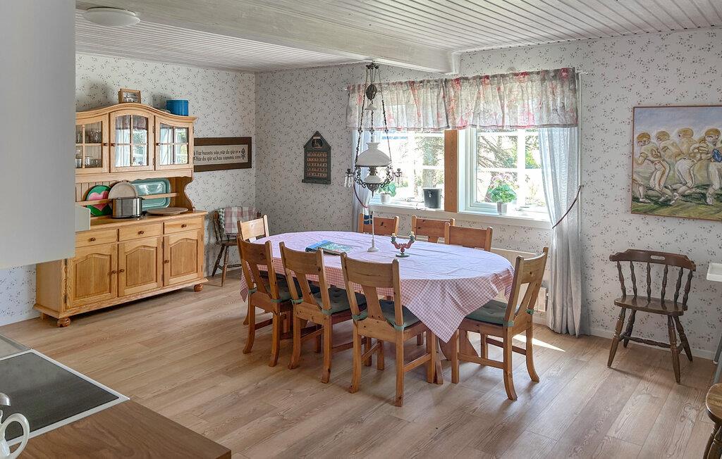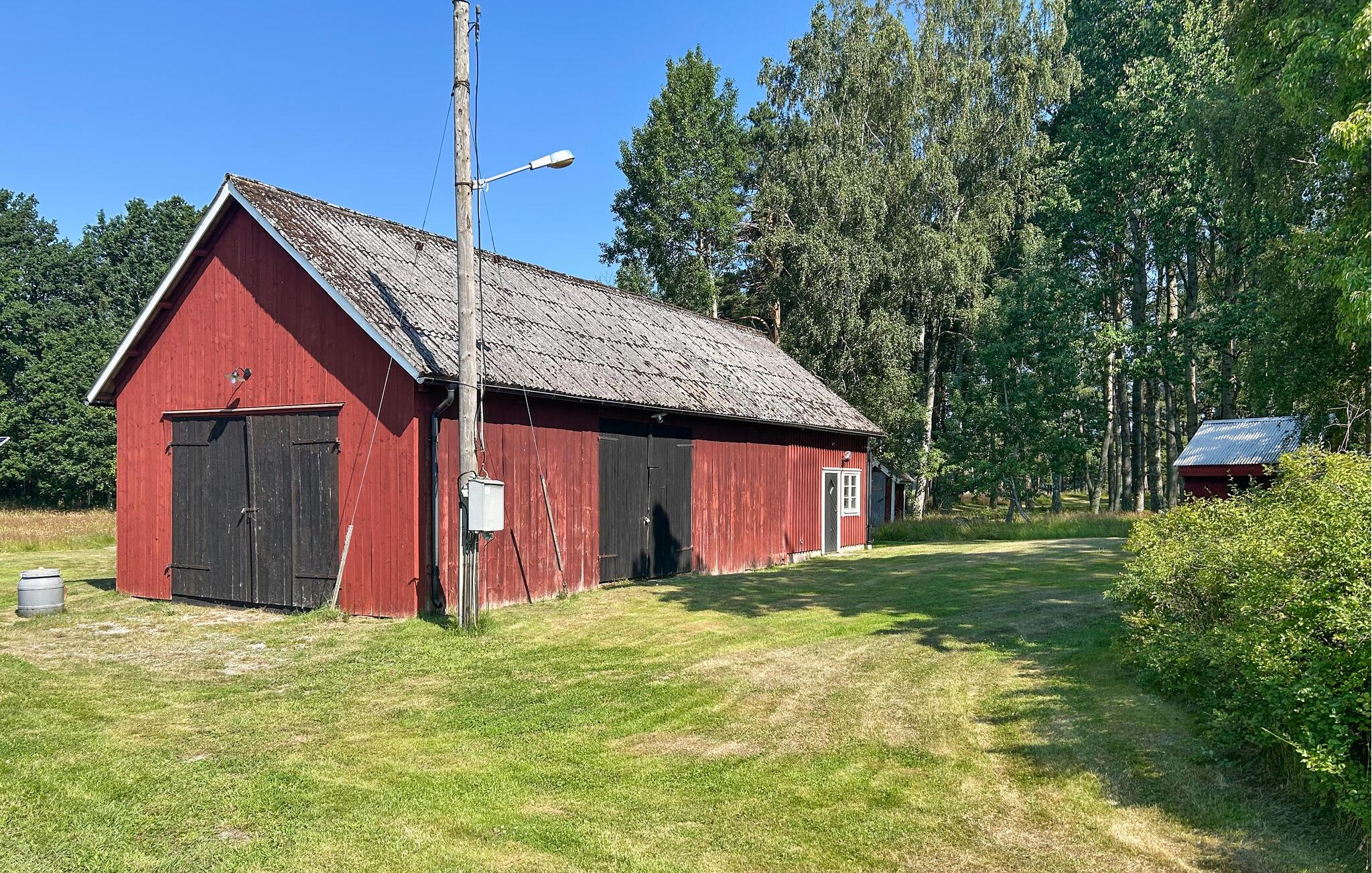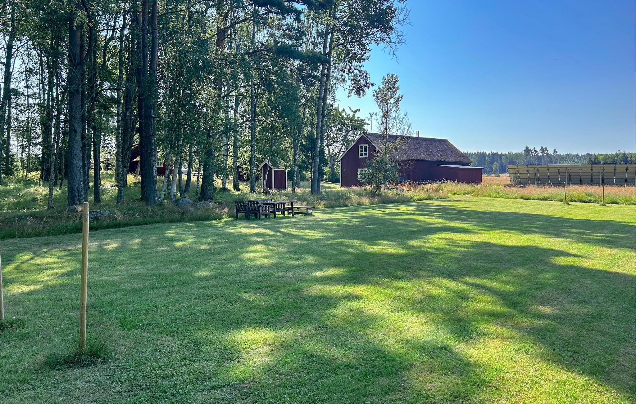 Lige ved vandet er der to dejlige grillpladser med betagende udsigt over søen – ideelt til lange sommeraftener med solnedgange og fuglesang. Den store græsplæne lægger op til at lege og løbe rundt, og Vänern-skærgården med sine øer og rigelige fisk ligger lige uden for døren. Efter en dag på søen kan I slappe af i saunaen med afslapningsområde og nyde roen. Børnene vil elske legehuset med legetøj og masser af plads til alle deres sommereventyr. Indenfor venter en varm og indbydende atmosfære med brændeovn, komfortable sofaer og rustikke detaljer. Det veludstyrede køkken med det store spisebord er ideelt til fælles måltider.