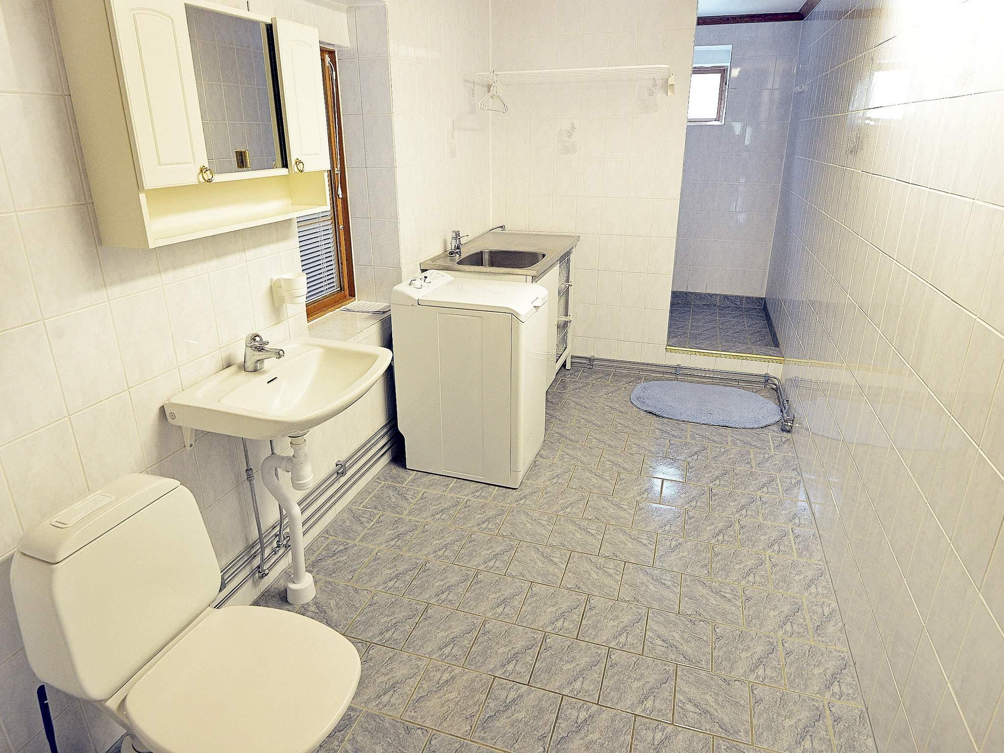 Bad/wc: vaskemaskine, wc, håndvask, bruser