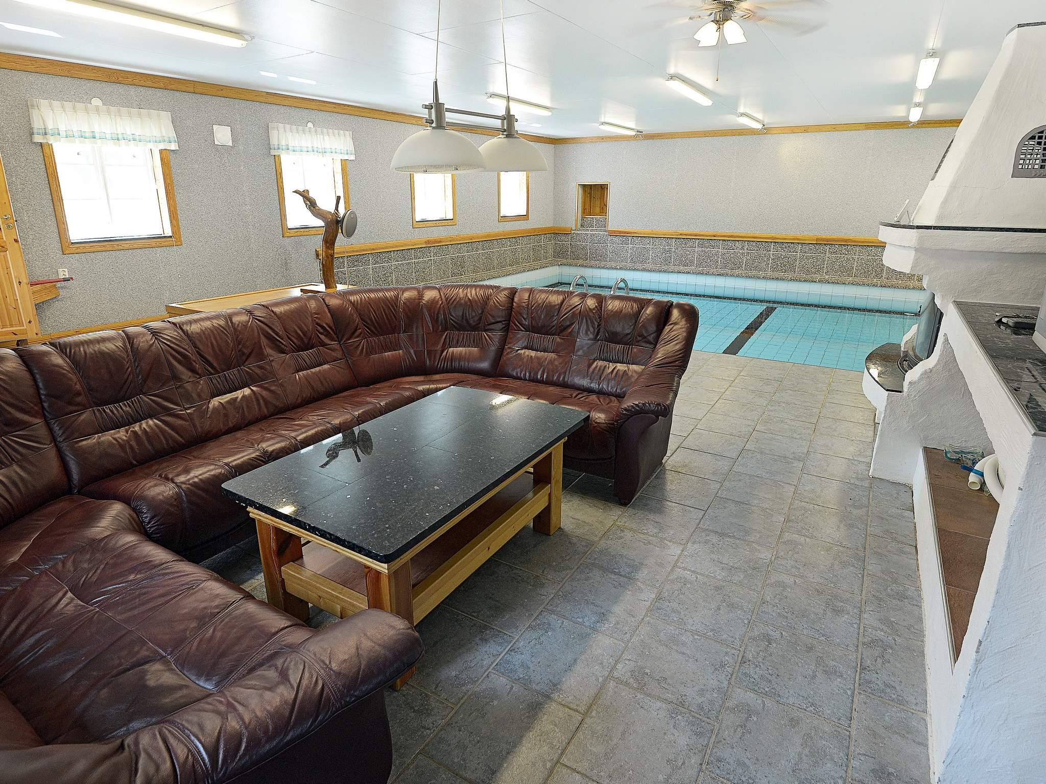 Villan ligger med storskogen och vildmarken runt hörnet långt i från stadens trafik och brus. Fastigheten har ett vackert separat poolhus på 200 m² med en 70 m² stor inomhuspoold, djup 1,5 m. Här kan ni även koppla av med ett bastubad efter doppet i poolen. Invid poolen finns en härlig relaxavdelning med stor skinngrupp och surroundanläggning av hög kvalitet. Under svala kvällar kan ni även värma er vid braskaminen. Är ni hungriga eller törstiga efter badet är det bara att förse sig i det kompletta köket. I poolbyggnaden finns även ett sovrum med dubbelsäng samt dusch och WC. Perfekt för par eller ungdomar som vill rå om sig själva.