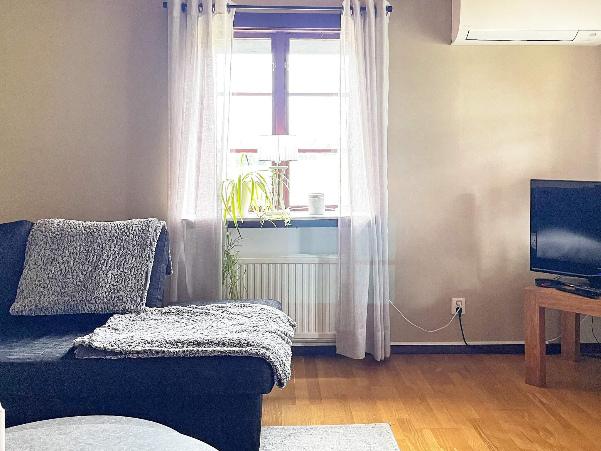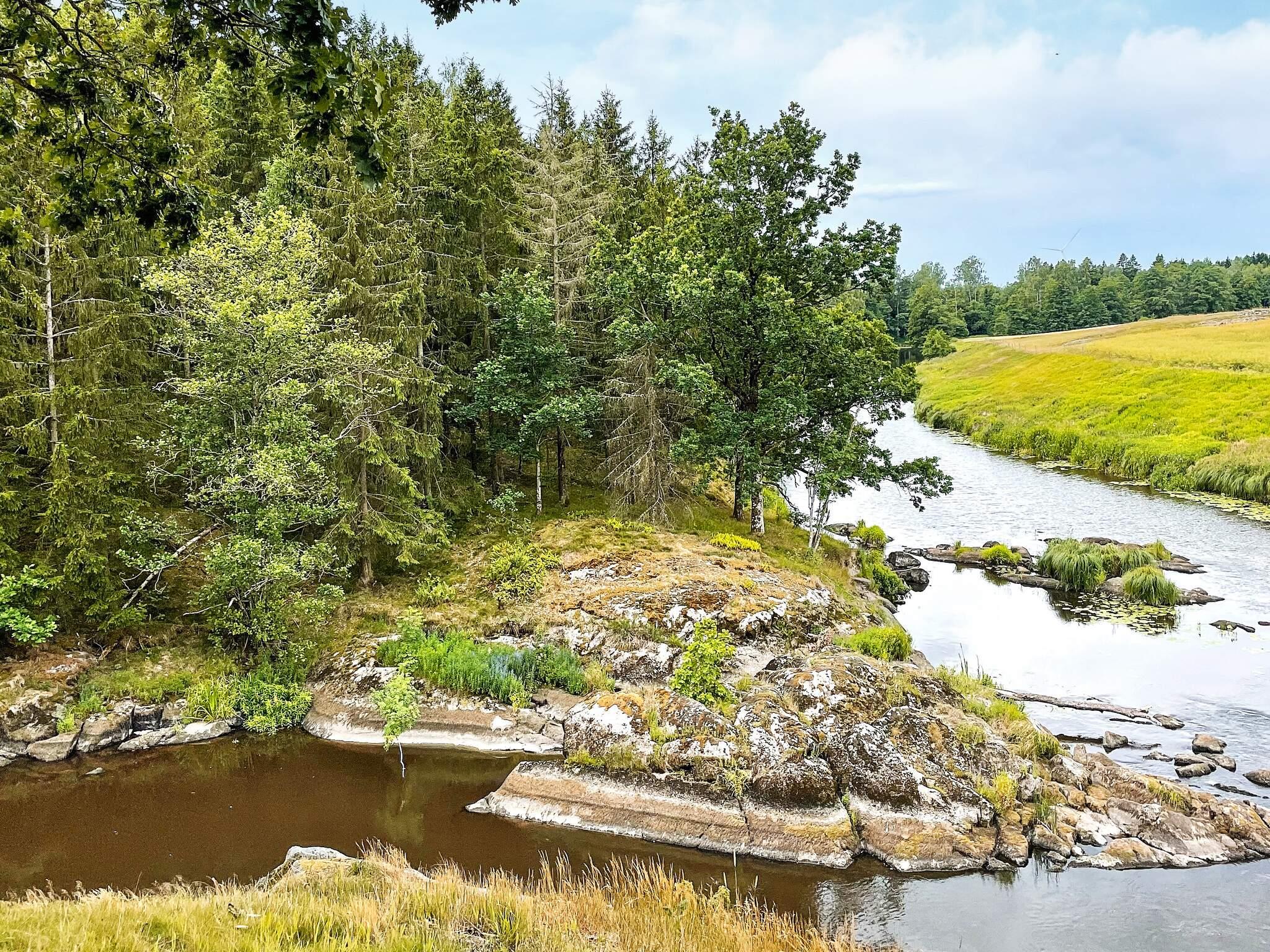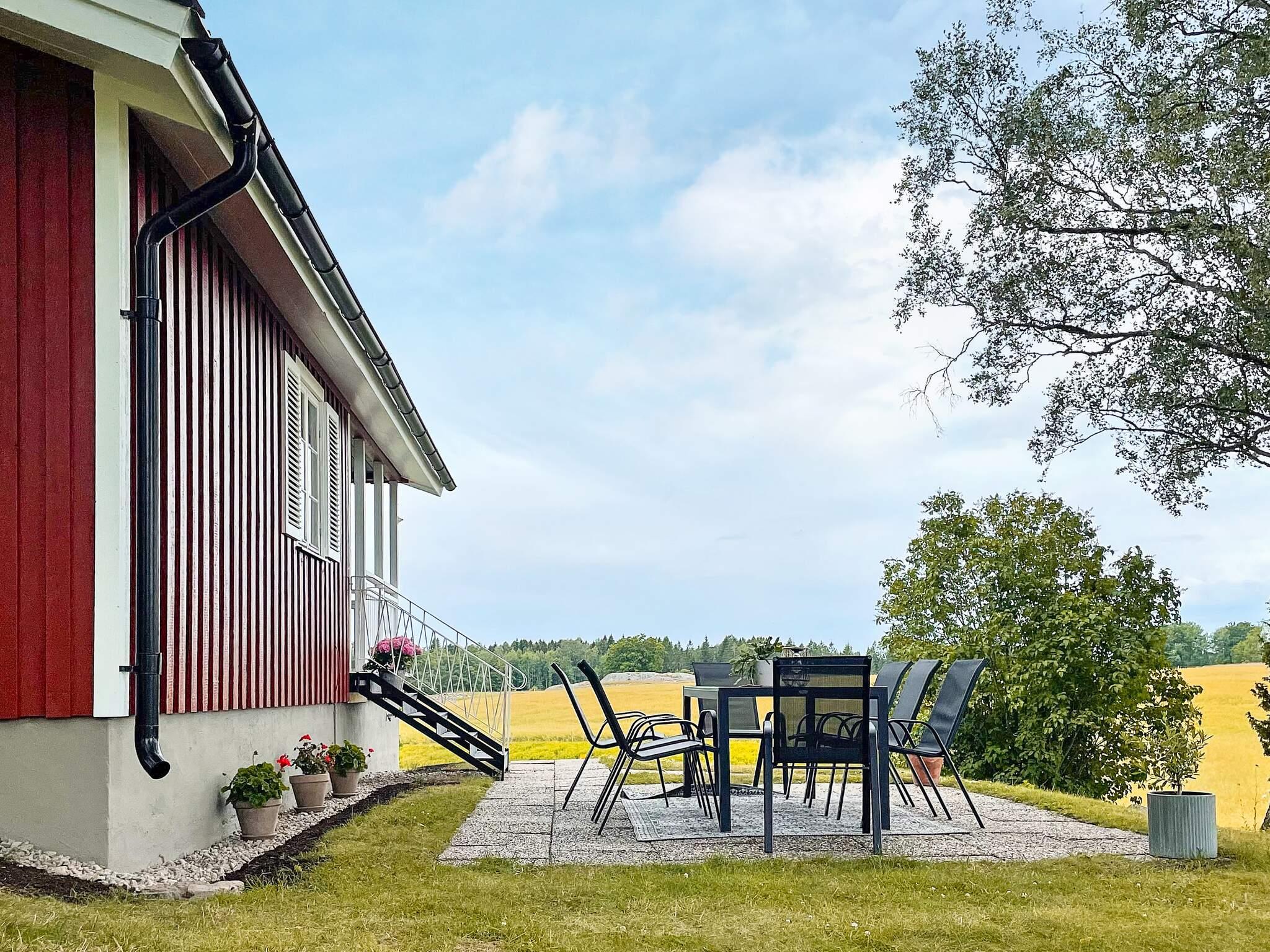 Du välkomnas ner på liten grusväg med ån precis bakom huset. Tomten är delvis kuperad på baksidan. På framsidan finns utemöbler med klotgrill för goda middagar. Entrén är under tak där man gärna sitter och blickar ut över rapsfältet utanför. Du välkomnas i en öppen planlösning med vardagsrummet rakt fram. I rummet finns en stor inbjudande soffa och tv med svenska tv-kanaler och cromecast. Huset har även trådlöst wifi. Köket är till vänster med matplats för 6 personer. Köksdelen är öppen och fullt utrustad med allt ni kan behöva för en trivsam semester och goda middagar.