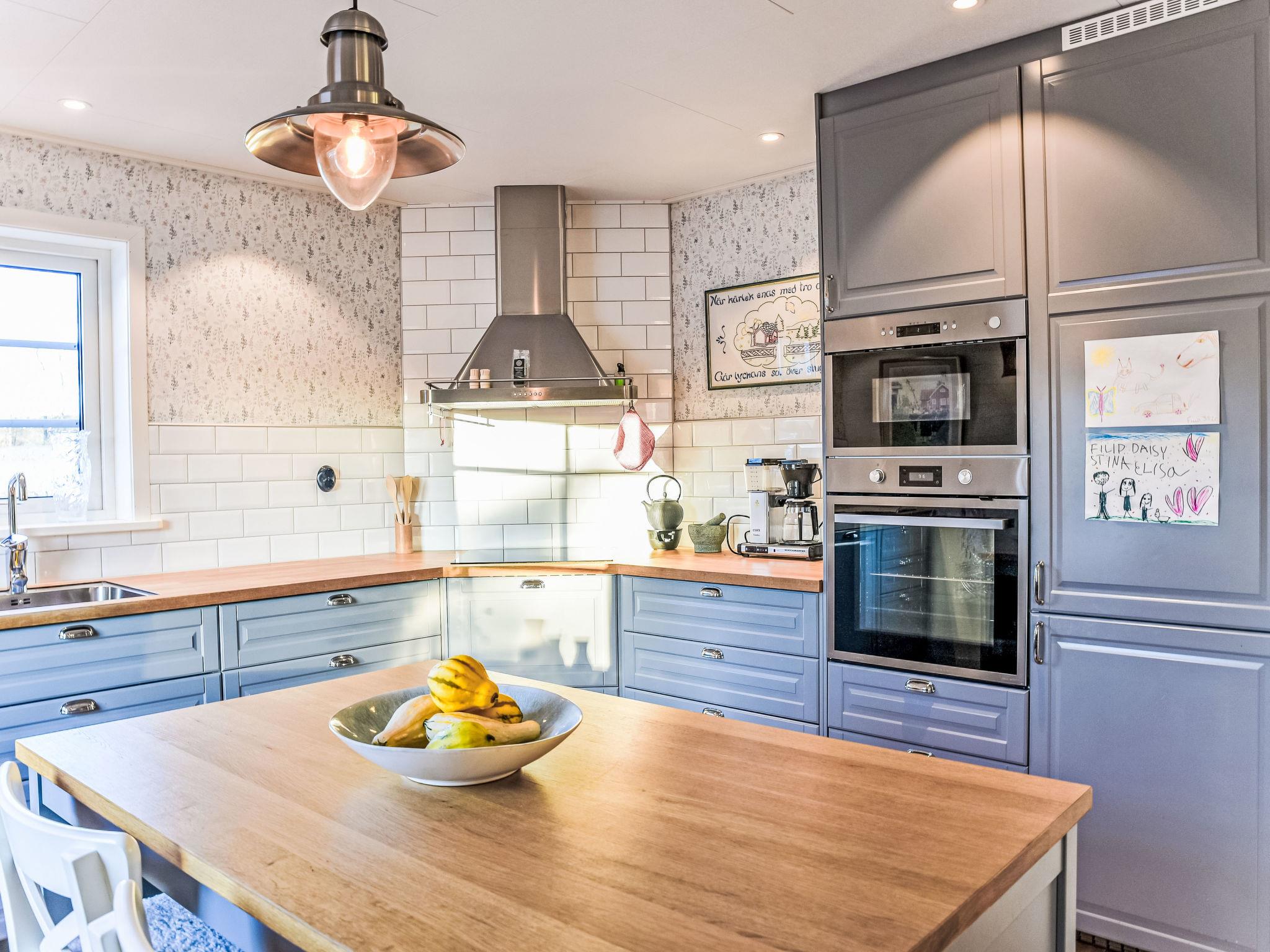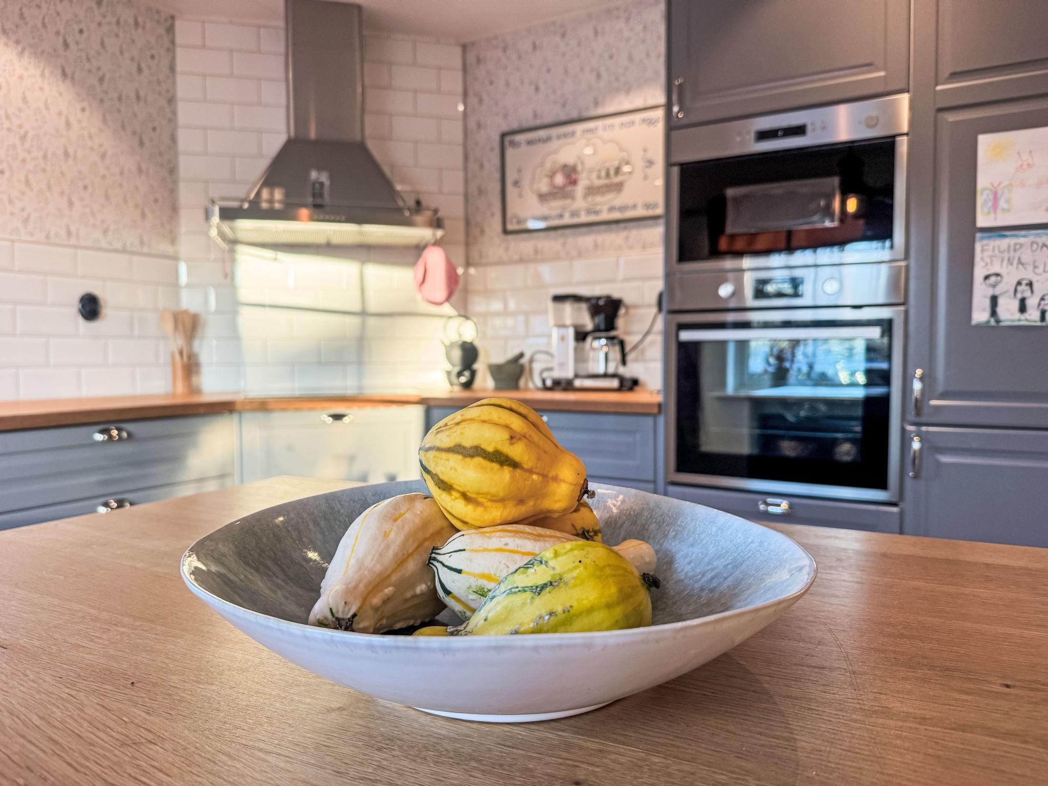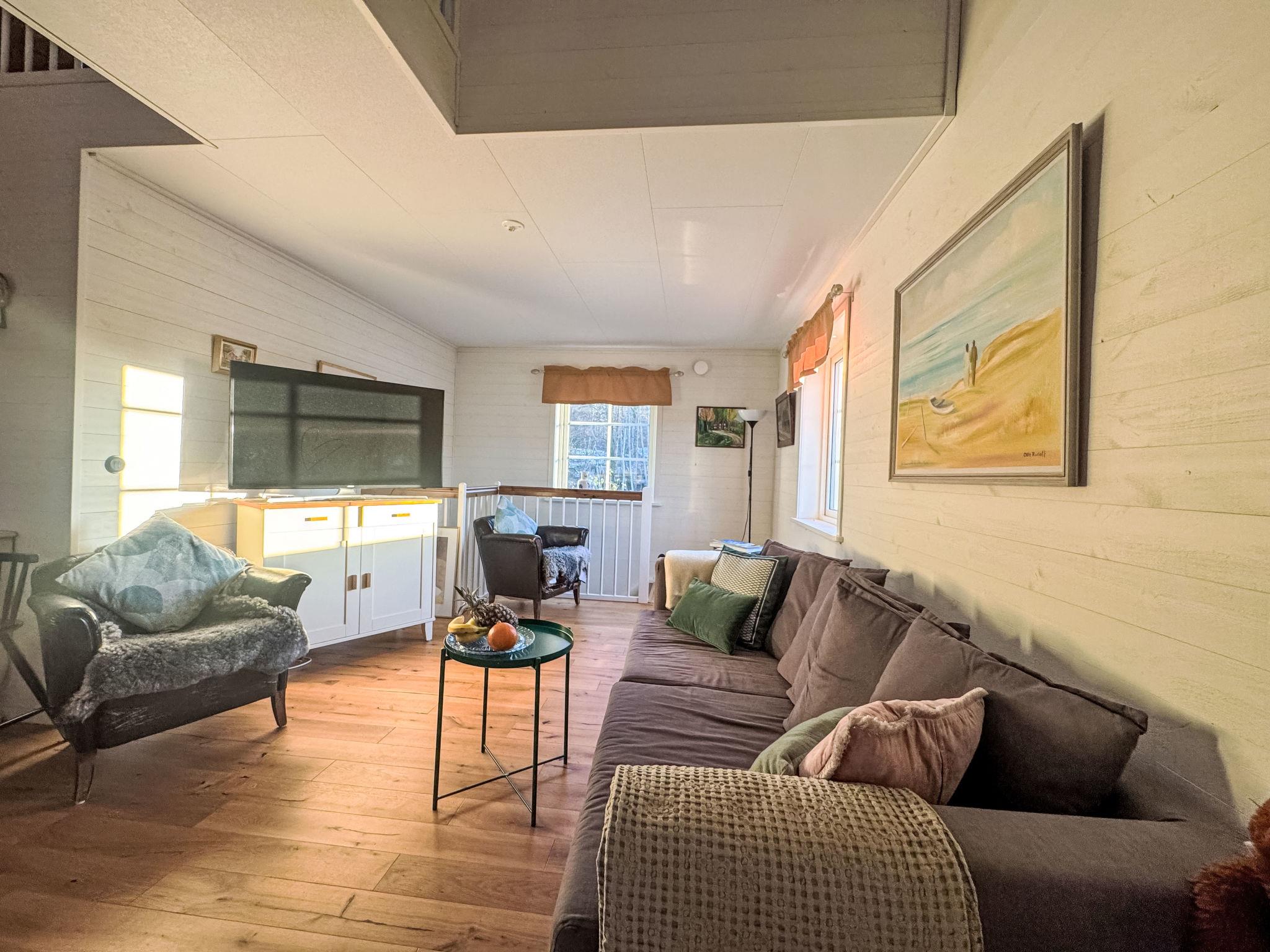 "Teåker", 5-room house 120 m2. Beautiful and modern furnishings: open living room with TV (flat screen). 1 room with 1 double bed (180 cm, length 200 cm). Open kitchen (4 hot plates, oven, toaster, microwave, freezer, electric coffee machine) with dining table. Shower/WC. Electric heating, forced-air heating. On the lower ground floor: 1 room with 1 double bed (180 cm, length 200 cm). Shower/WC. Upper floor: 2 rooms, each room with 1 double bed (160 cm, length 200 cm). Parquet floors, natural stone floors. Terrace 40 m2. Terrace furniture, barbecue (portable). Beautiful view of the garden and the forest. Facilities: washing machine. Internet (WiFi, free). Please note: non-smoking house.