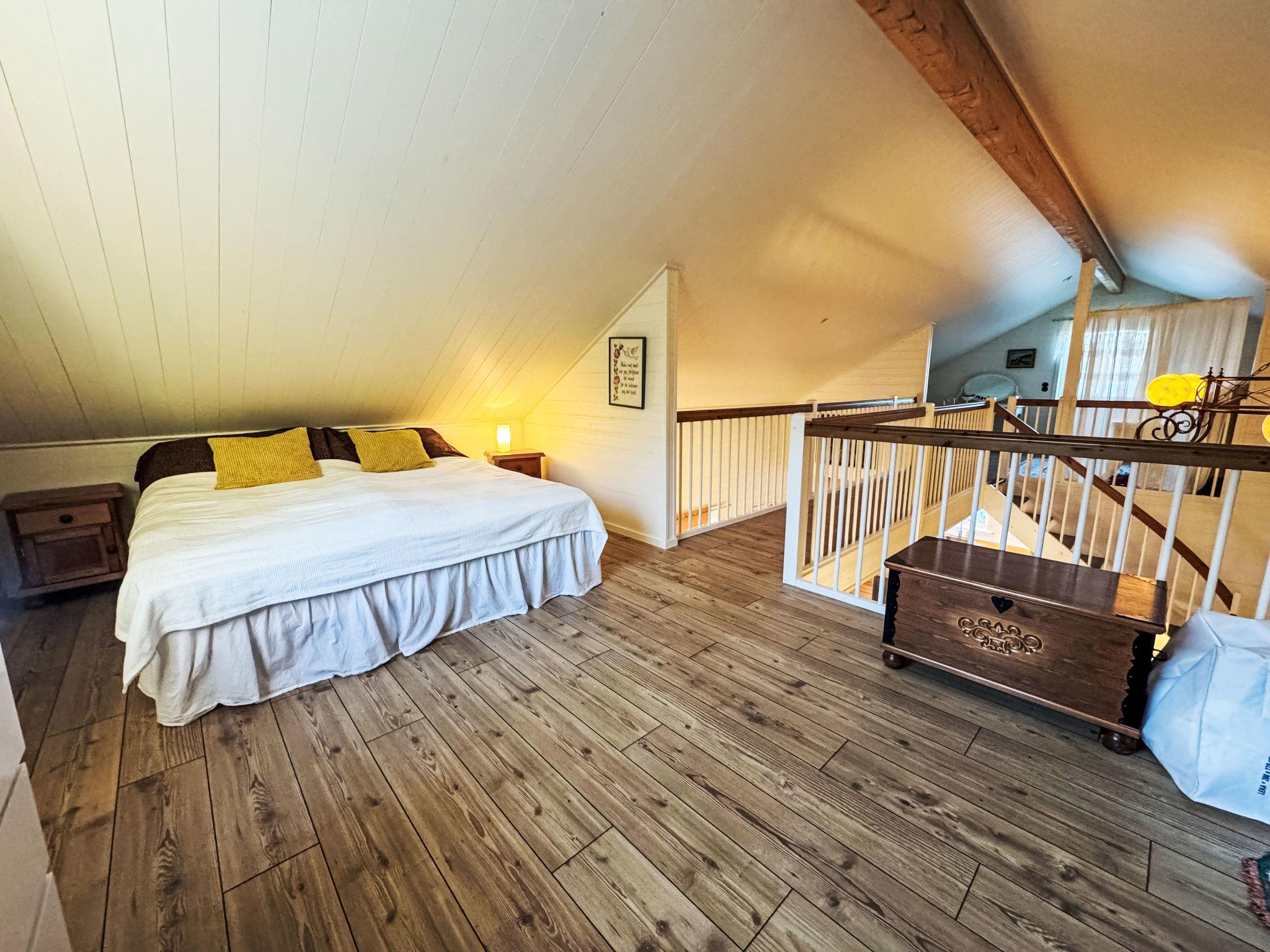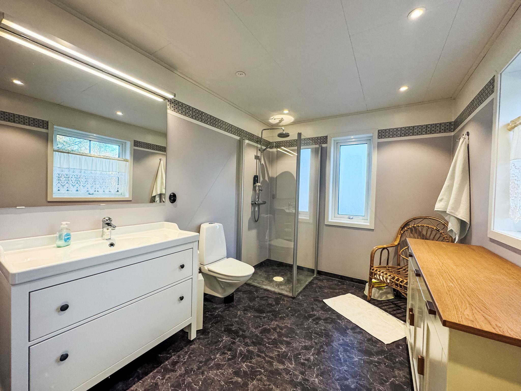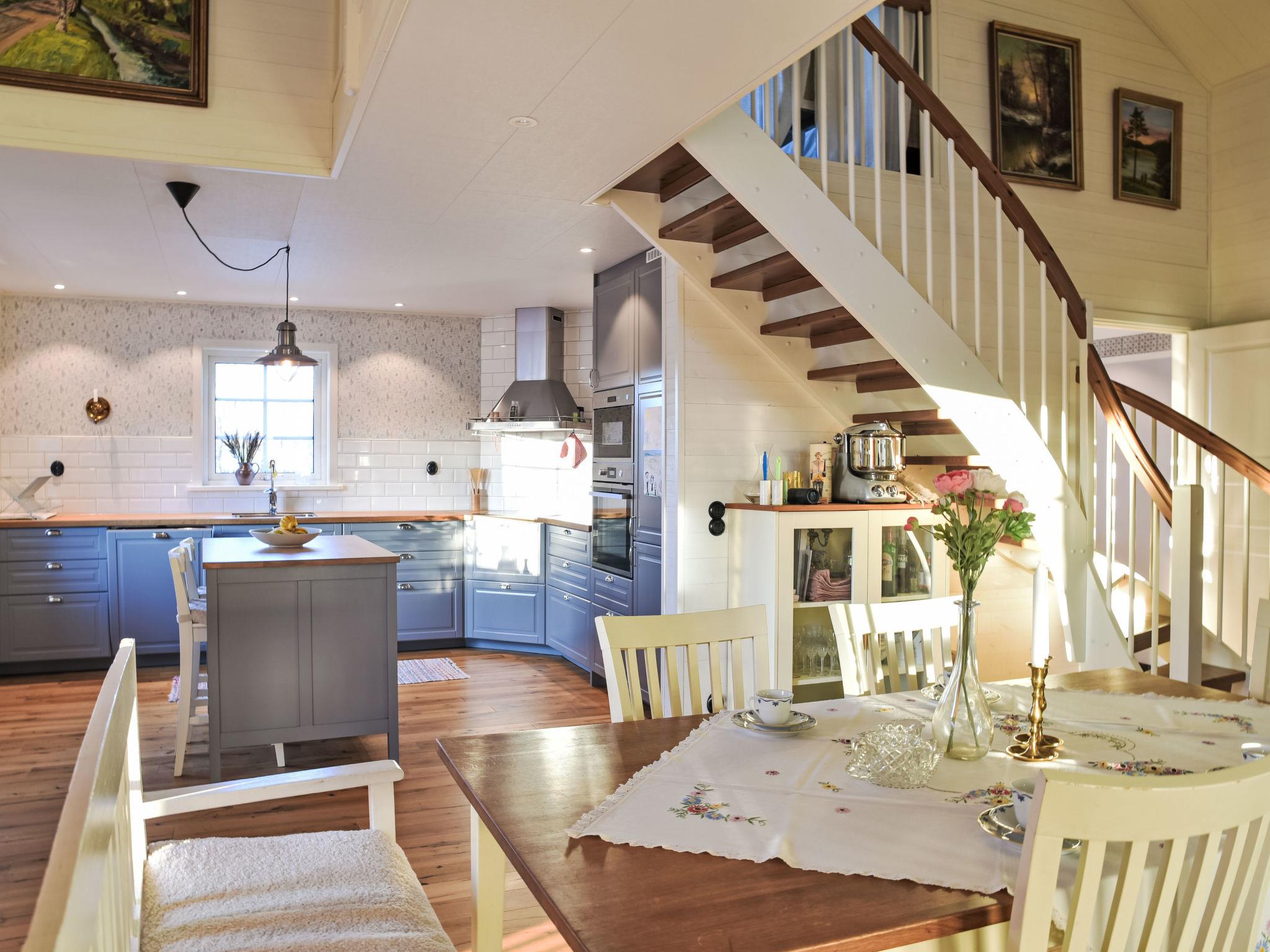 "Teåker", 5-room house 120 m2. Beautiful and modern furnishings: open living room with TV (flat screen). 1 room with 1 double bed (180 cm, length 200 cm). Open kitchen (4 hot plates, oven, toaster, microwave, freezer, electric coffee machine) with dining table. Shower/WC. Electric heating, forced-air heating. On the lower ground floor: 1 room with 1 double bed (180 cm, length 200 cm). Shower/WC. Upper floor: 2 rooms, each room with 1 double bed (160 cm, length 200 cm). Parquet floors, natural stone floors. Terrace 40 m2. Terrace furniture, barbecue (portable). Beautiful view of the garden and the forest. Facilities: washing machine. Internet (WiFi, free). Please note: non-smoking house.