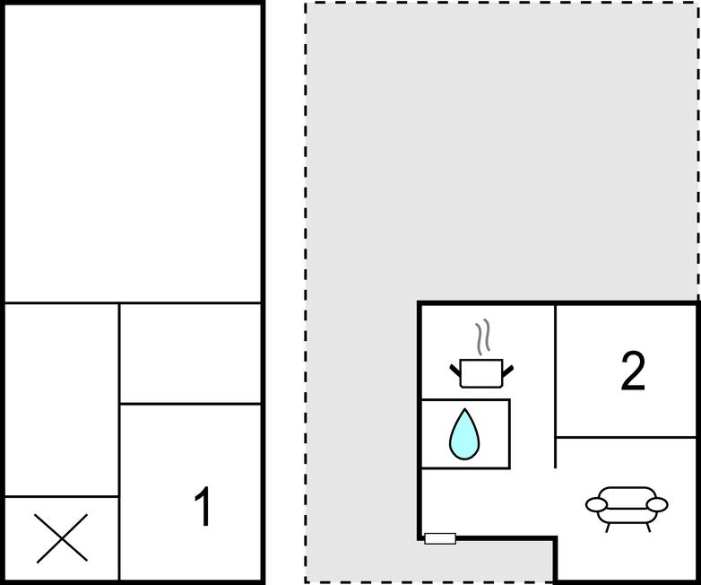 Soveværelse (nr. 1) - 1 Soveplads. (Enkeltseng(e)). 2 Sovepladser. (Dobbeltseng(e)).