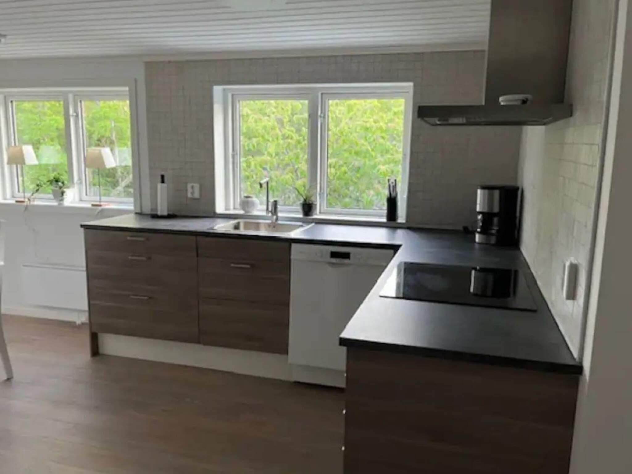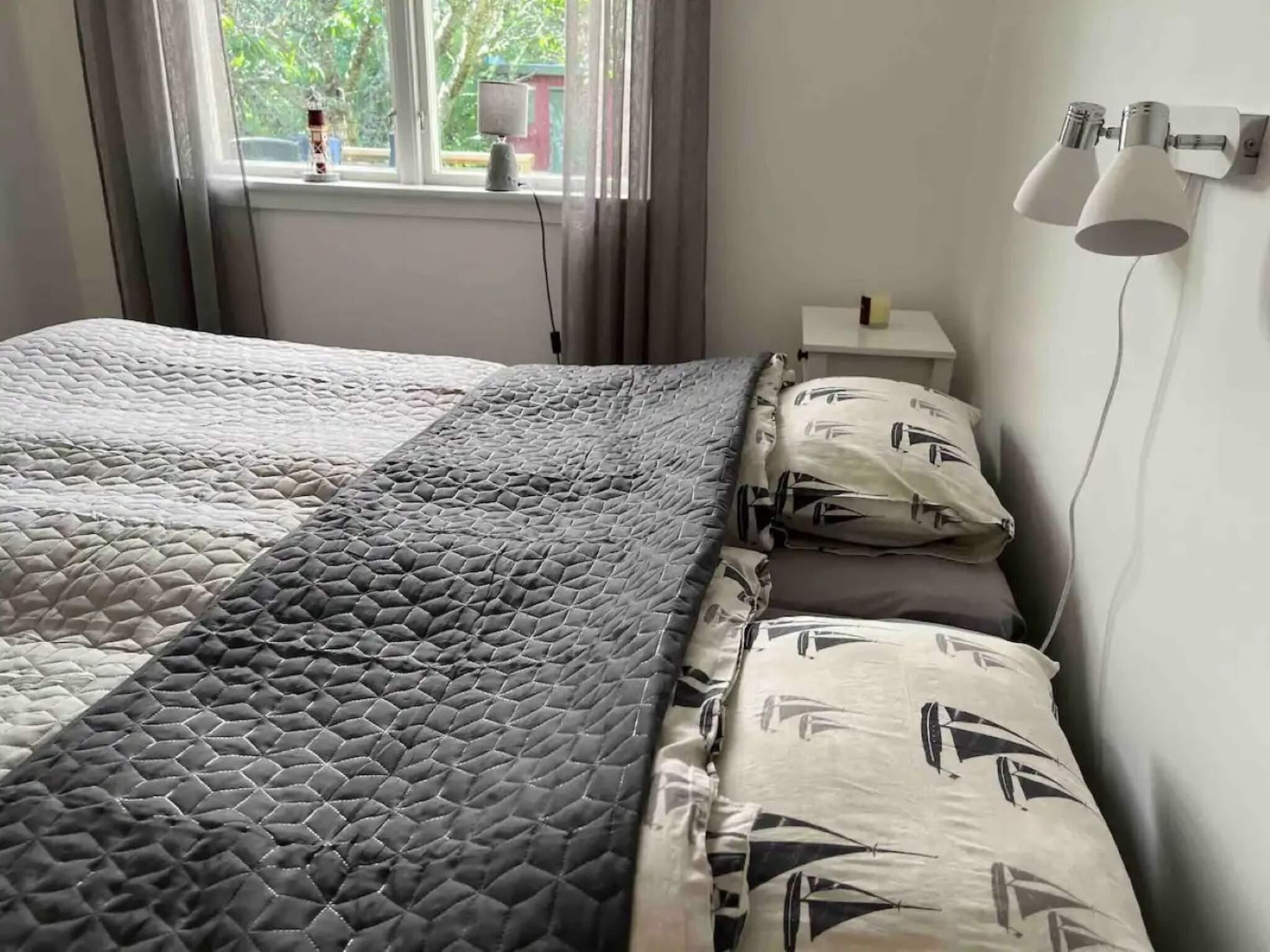 Lägenhet 1 (bottenvåningen): Stort kök och vardagsrum, tre sovrum med sex fullstora sängar, badrum, generösa sällskapsutrymmen och en vedspis för extra värme och atmosfär. Lägenhet 2 (övervåningen): Kök och vardagsrum, två sovrum med tre fullstora sängar och en våningssäng. Badrum och tvättstuga finns på bottenvåningen. Huset har 11 vanliga sängar plus möjlighet till en extrasäng, barnstol på begäran, fiber-Wi-Fi, luftvärmepumpar på båda våningarna och en tvättstuga med tvättmaskin och torktumlare. Gratis parkering finns för upp till tre bilar. Hela huset är ditt, förutom garaget. Båtälskare kommer att uppskatta den närliggande båtrampen vid Lervikshamnen och gratis användning av en 2,20 m bred båtplats (förhandsanmälan krävs).