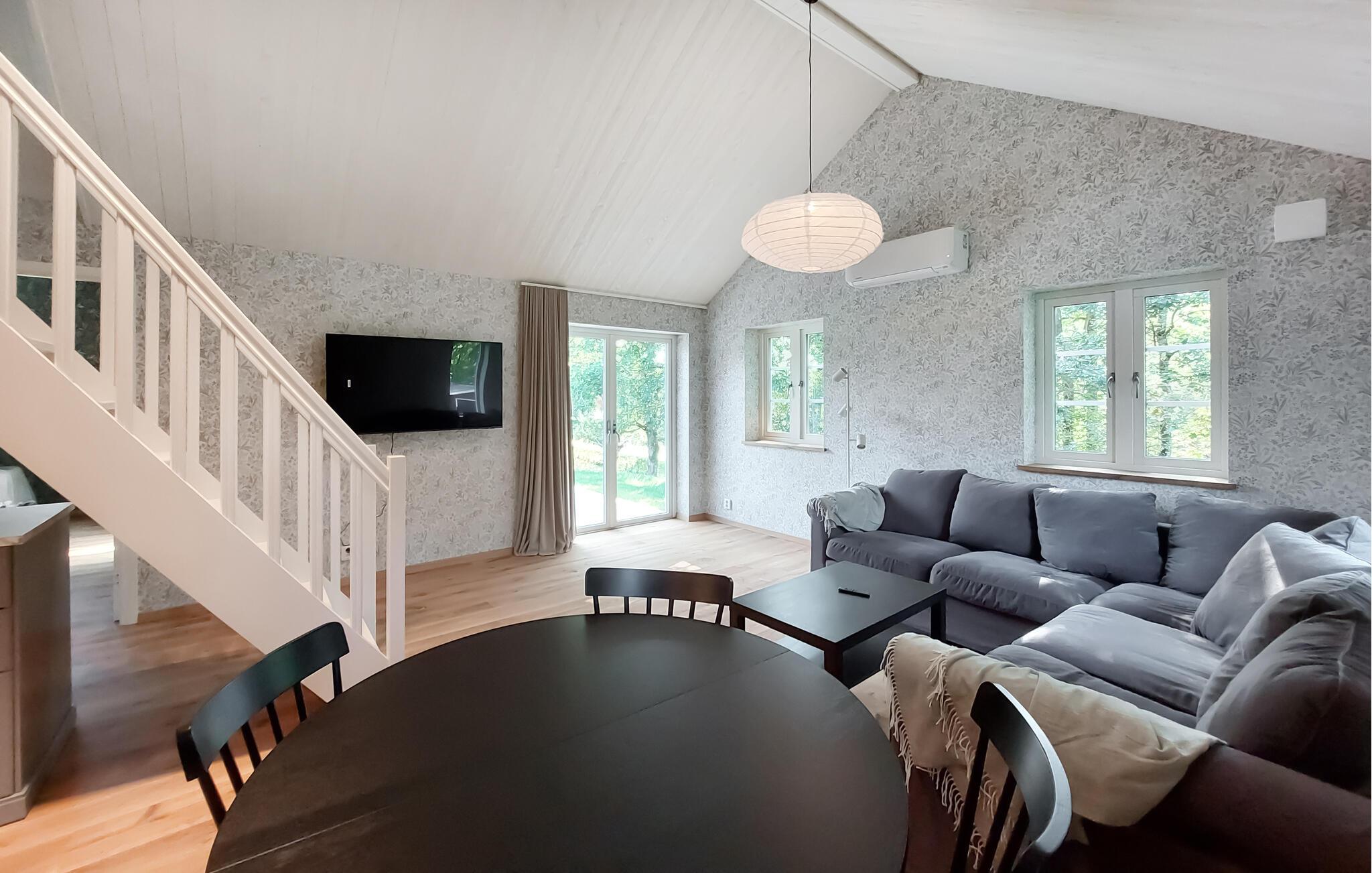 Tilbring en afslappende ferie i jeres charmerende feriehus i Munka-Ljungby. Det moderne hus byder på stilfuld indretning og masser af plads til afslapning, både indendørs og udendørs. Start dagen med en hyggelig morgenmad på den solrige terrasse og nyd udsigten til det grønne. Den rummelige græsplæne giver masser af plads til udendørs aktiviteter eller blot til at koble af i de rolige omgivelser.