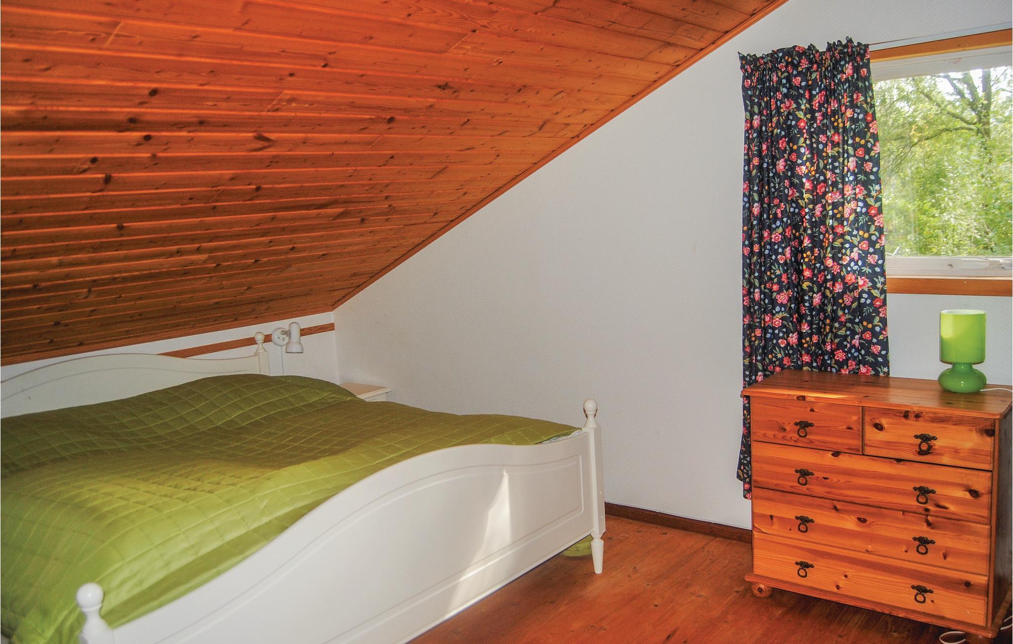 Sovepladserne er fordelt på den hyggelige hems og et soveværelse. Huset er hyggeligt indrettet med masser af træ og charme. I køkkenet er der spiseplads, og åbent ud til opholdsstuen så I let kan nyde hinandens selskab mens nogle laver mad og andre spiller et spil eller hygger sig med en god bog.