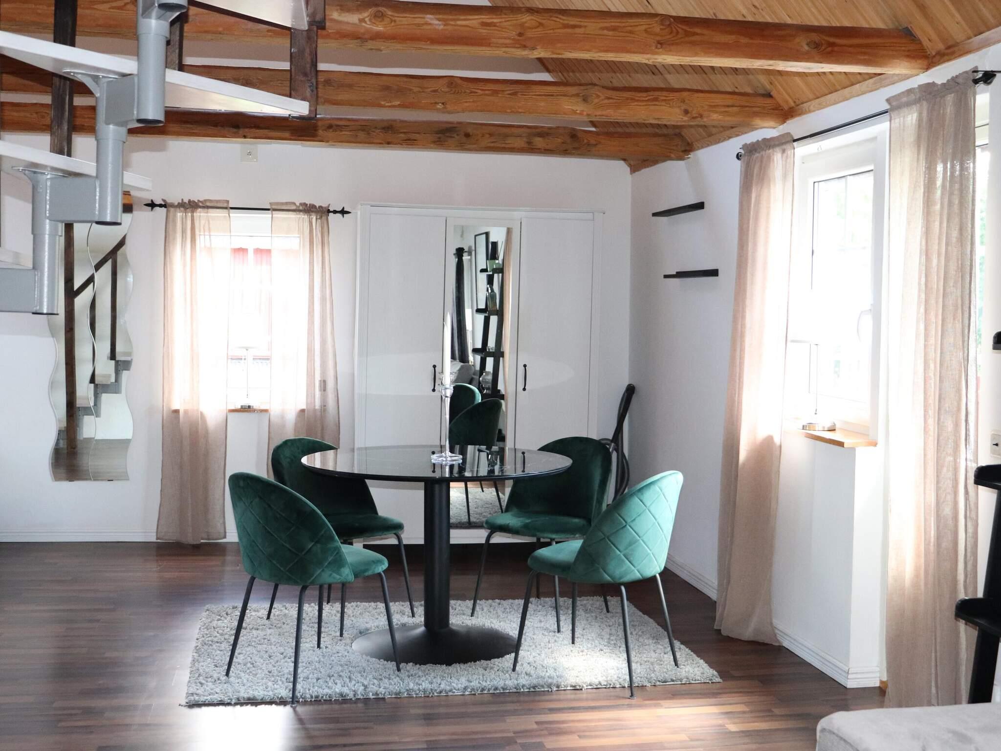 Gårdshuset ligger nära ägarens gård men har egen infart och en stor rymlig balkong med utsikt över vacker natur. Från entrén kommer ni in i en liten hall och här finns ett stort badrum med tvättmaskin. Köket är smakfullt och välutrustat med en vedspis. Vardagsrummet är till del öppet upp i nock. Här finns en del med en bekväm soffa, en braskamin och en modern TV med viasats kanalutbud. Den andra delen har en matplats och en bäddsoffa för två personer. Härifrån har ni utgång till en rymlig, härlig balkong med utemöbler och grill. En del som har ett stort matbord avskärmat och under tak. Här kan ni njuta ostört av både morgonkaffet och sköna grillkvällar med en härlig utsikt. Från vardagsrummet leder en trappa upp till ett rymligt sovloft med en dubbelsäng. Den stora gräsmattan framför stugan har plats till familjens alla aktiviteter. Ägaren har en hästgård och på gårdsplanen spatserar hönorna fridfullt pickande. Ägg till frukost, inga problem.