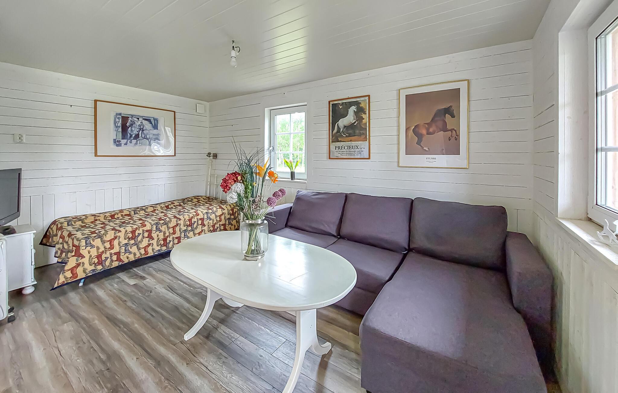 Haven, der er udstyret med en grill, lægger op til hyggelige aftener udendørs. I nærheden af ??skoven kan I plukke bær og svampe eller nyde naturens fred og ro. For små hesteelskere er der ponyer til rådighed til rideundervisning, hvor I kan se frem til afslappende timer på gården.