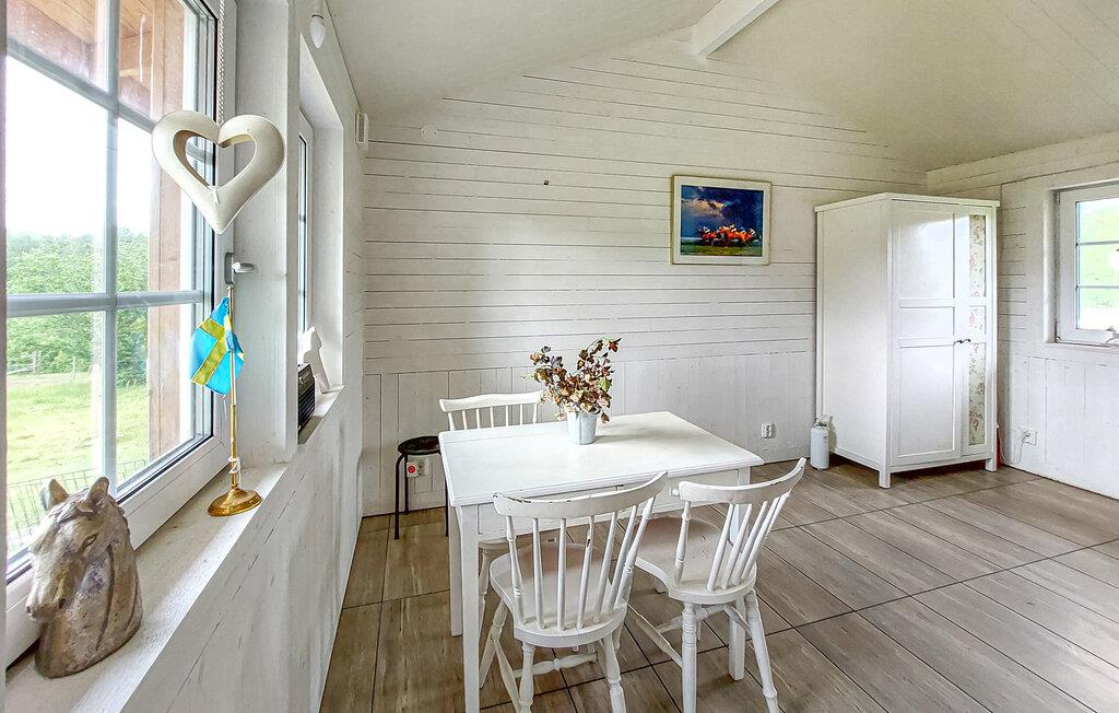 Rejs med familien og ind i det charmerende træhus. Det hyggelige interiør tilbyder en varm og indbydende atmosfære, ideel til familier. Kom sammen om morgenen til en lækker morgenmad i køkken-alrum og planlæg dagens aktiviteter for dagen ved spisebordet.