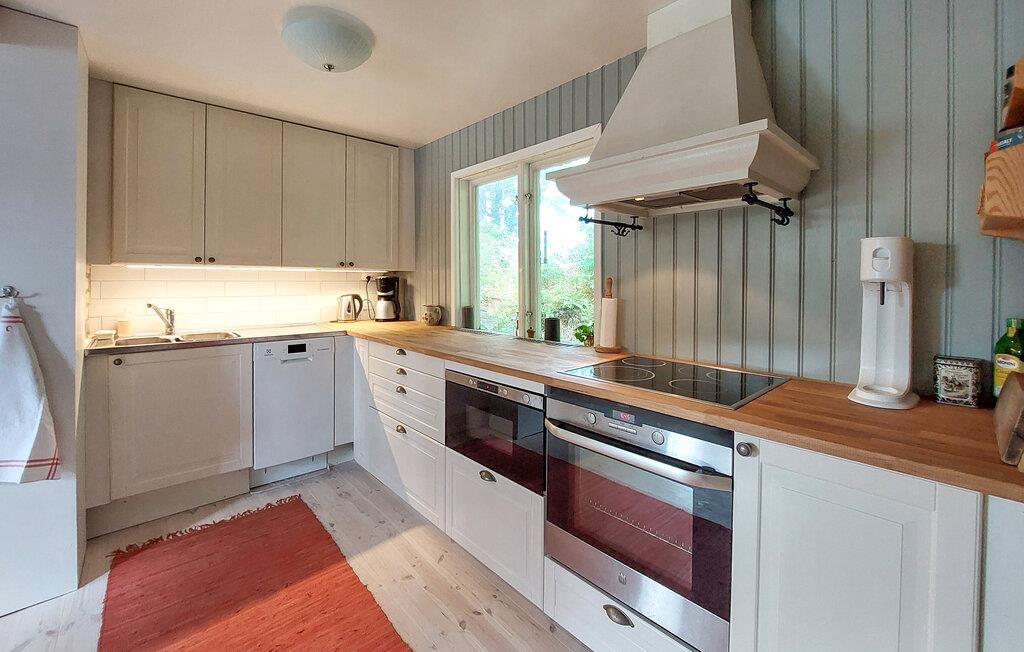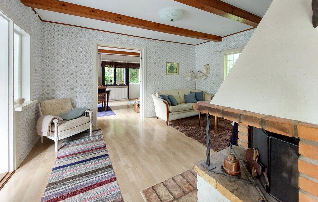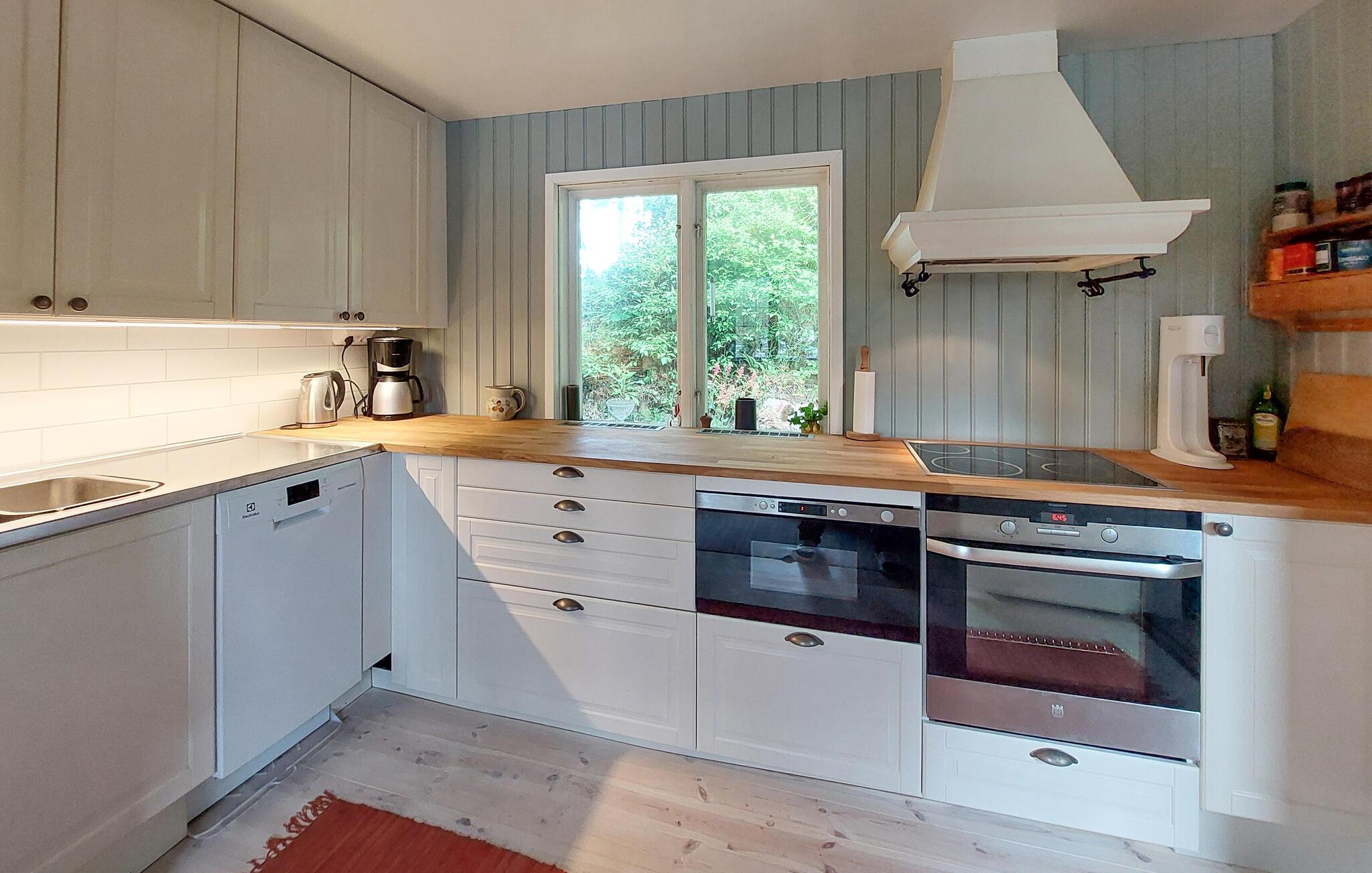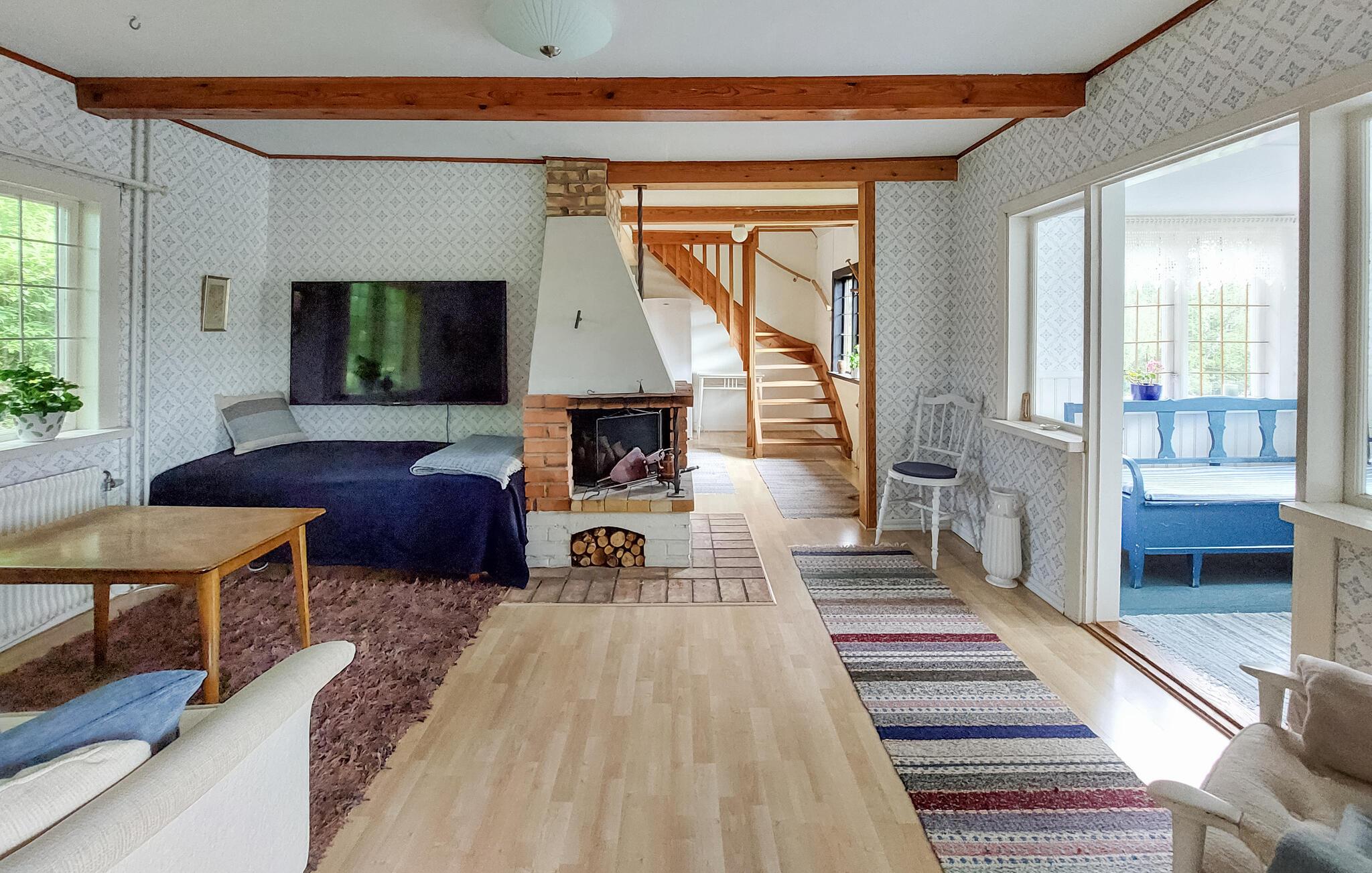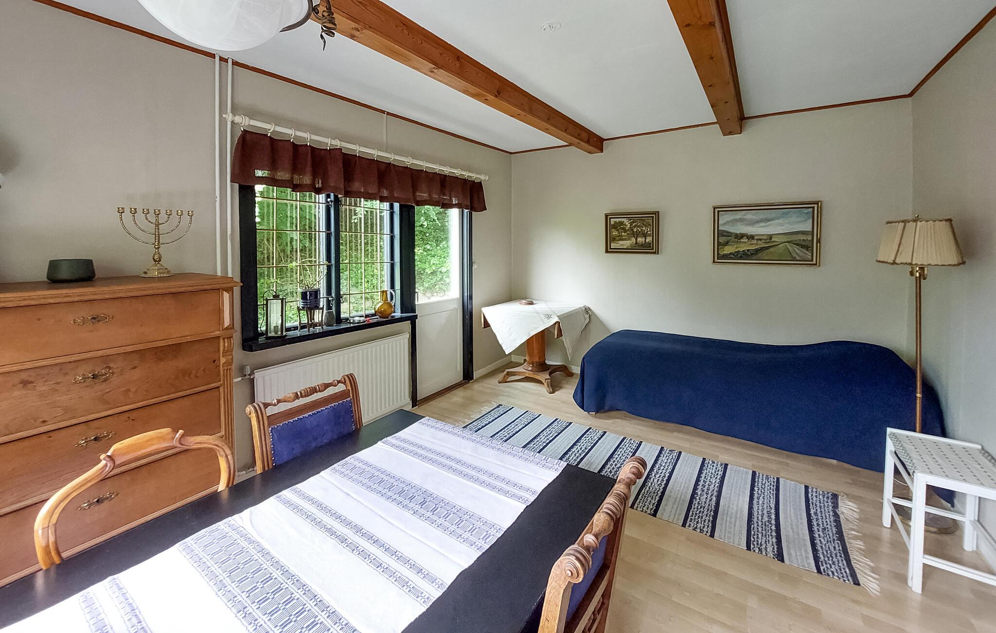 Oplev en idyllisk ferie i dette charmerende feriehus ved søen. Dette kærligt restaurerede hus fra starten af 1900-tallet kombinerer smukke detaljer fra fortiden med moderne faciliteter. Her kan I spise og slappe af i et lyst og indbydende interiør. Fremtryll lækre måltider i det rummelige køkken, nyd udsigten over søen, og brug de komfortable sofaer til at læse eller spille spil sammen. Den grønne naturgrund ligger mellem to søer – forfrisk jer med en svømmetur ved molen, nyd den fredelige atmosfære med en udendørs morgenmad, brug robåden og prøv lykken med at fiske. Tænd grillen og nyd freden og roen langt fra hverdagen. Udforsk det nærliggende Ängelholm, hvor I kan spille golf, shoppe og prøve regionale specialiteter på en fin restaurant. Vandr gennem Hallandsåsens natur, tag ture til sommerbyen Båstad, hav det sjovt med familien i Kungsbygget med sommerkælkning og klatring, og om vinteren kan I nyde skiløjperne på Hallandsåsen.