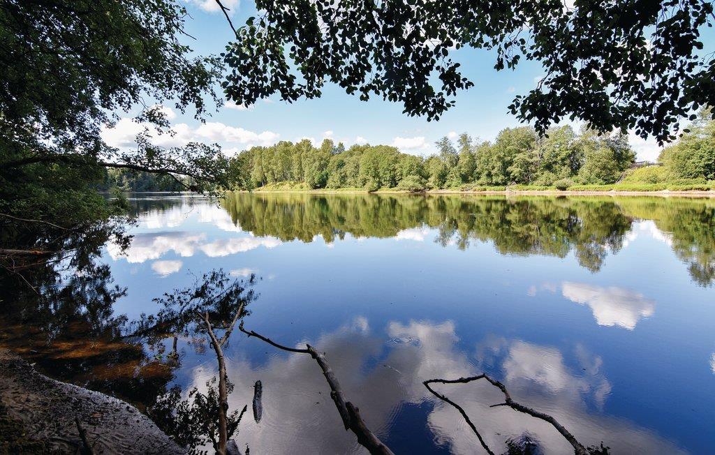Blot et stenkast fra Klarälven med gode fangstmuligheder af stalling og ørred ligger dette rummelige feriehus med stor overdækket terrasse og balkon.