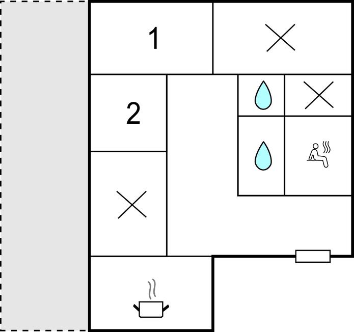 Badeværelse (nr. 1) - WC. Varmt og koldt vand. Bruser