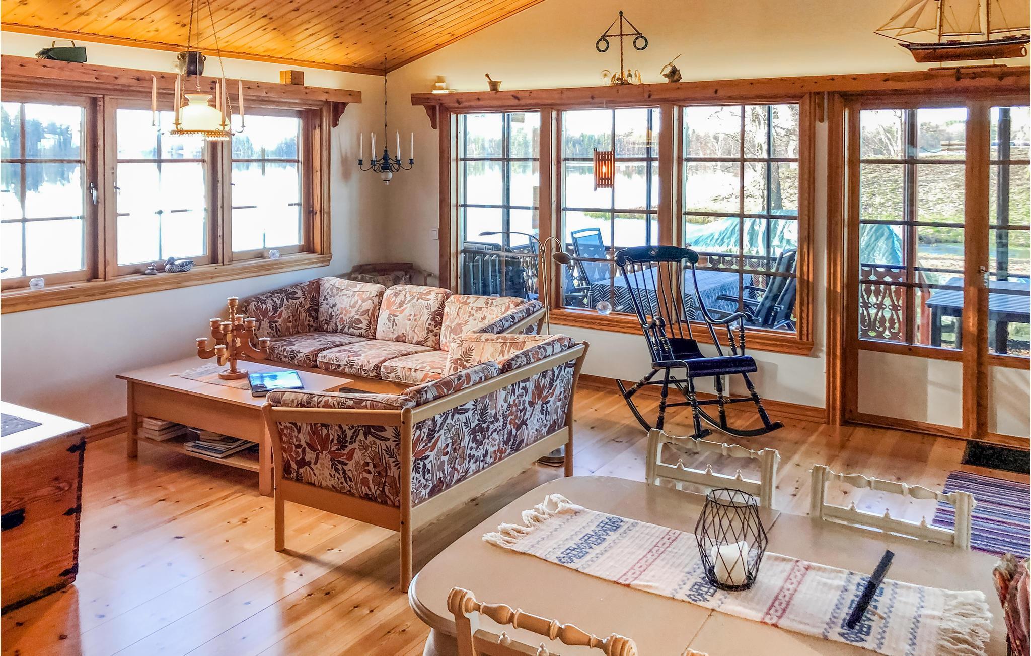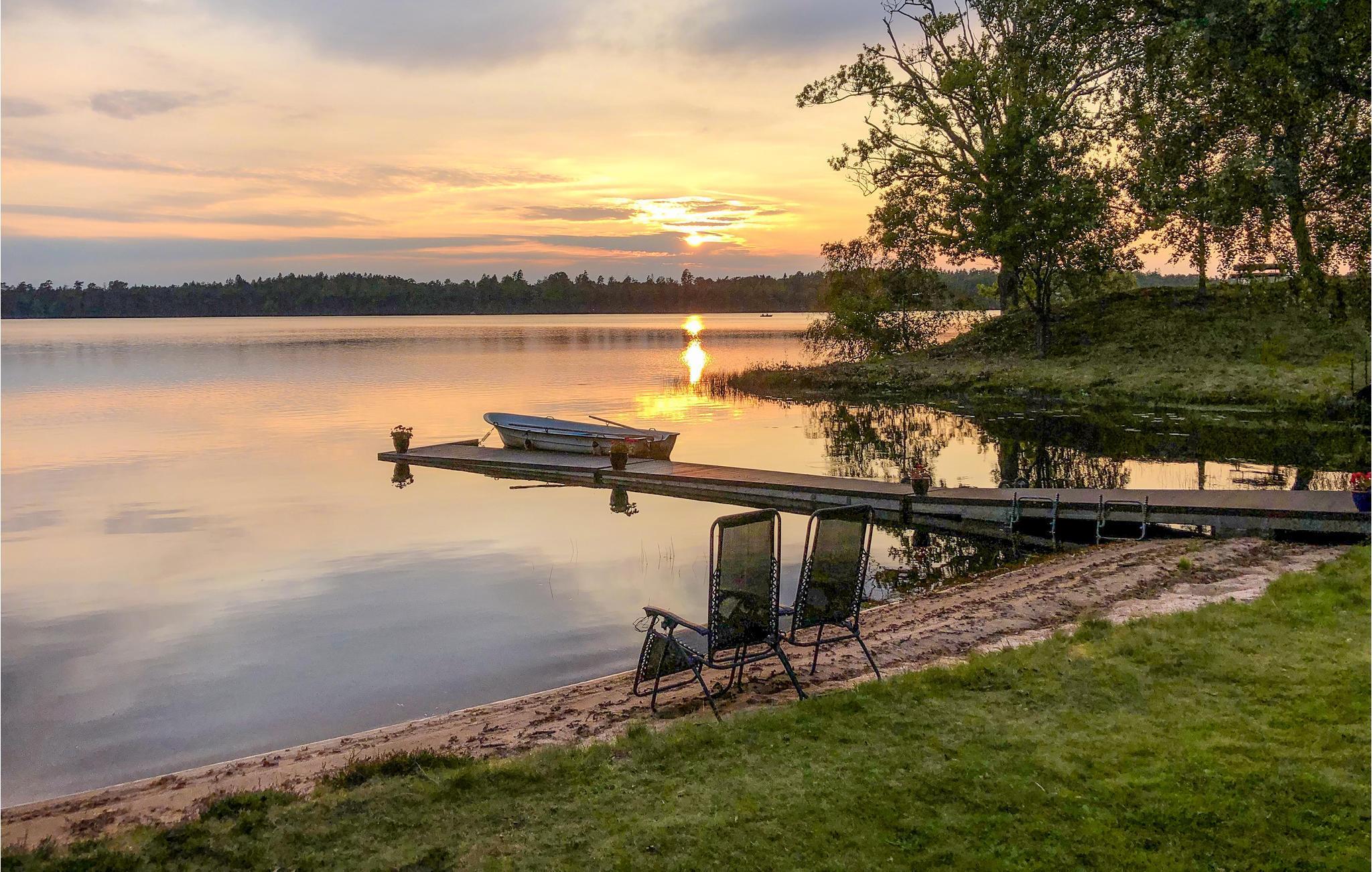 Dette hus ligger helt alene ved Nästa-søen med egen båd, badebro, strand og ø og lægger op til en dejlig, stille og rolig familieferie i naturen. Det er et virkeligt behageligt sted, I er kommet til. Boligen er indrettet med en masse kærlighed, og alt er gjort klar til, at I hurtigt vil føle jer hjemme her. Her er der lagt op til mange sjove spilleaftener i sofahjørnet og til en masse god mad ved de store sprossevinduer, som pifter stuen op og byder på en fantastisk udsigt. I kan også nyde jeres måltider sammen på terrassen. I har mange valgmuligheder her, så I skal egentlig bare beslutte, om I vil fiske hele dagen, solbade på stranden, hoppe i vandet fra kajen eller ro til jeres private ø! Om aftenen kan I sidde ved søen og nyde solnedgangen og den helt særlige svenske ro.