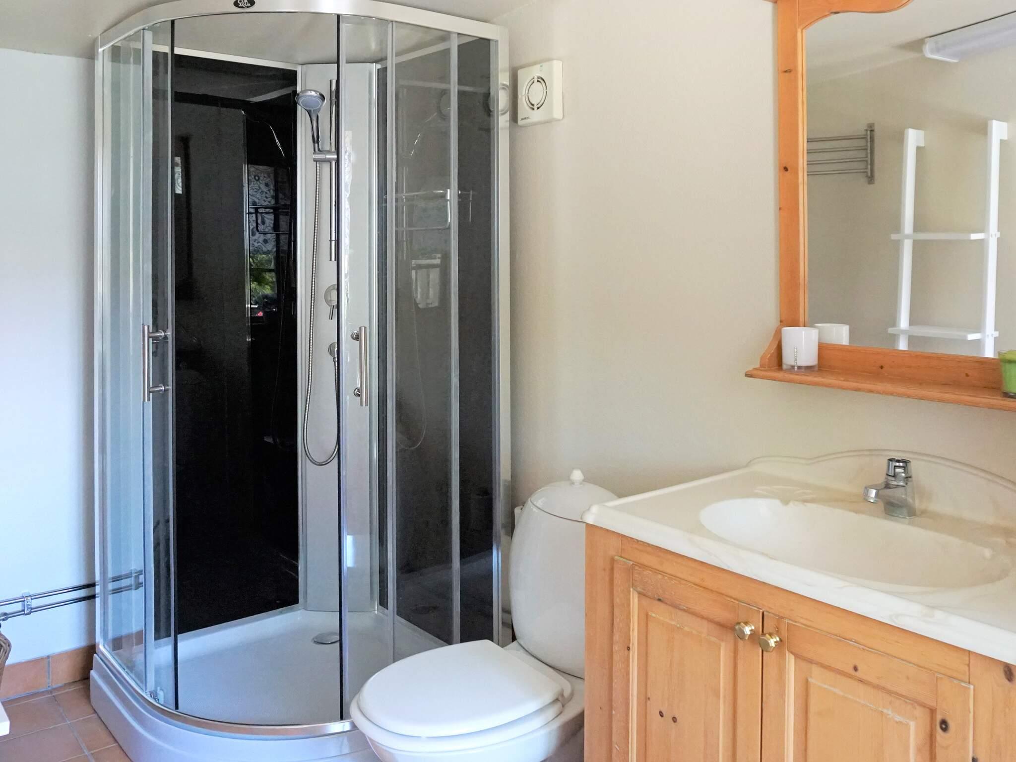 Tomten delar man med ägarna till stugan som också bor där, men man känner ändå att man har sin egna del av tomten och bor på sin egna plätt. Bra att veta är att man har kylskåp i stugan, men frysen har man i källaren i huset intill.
