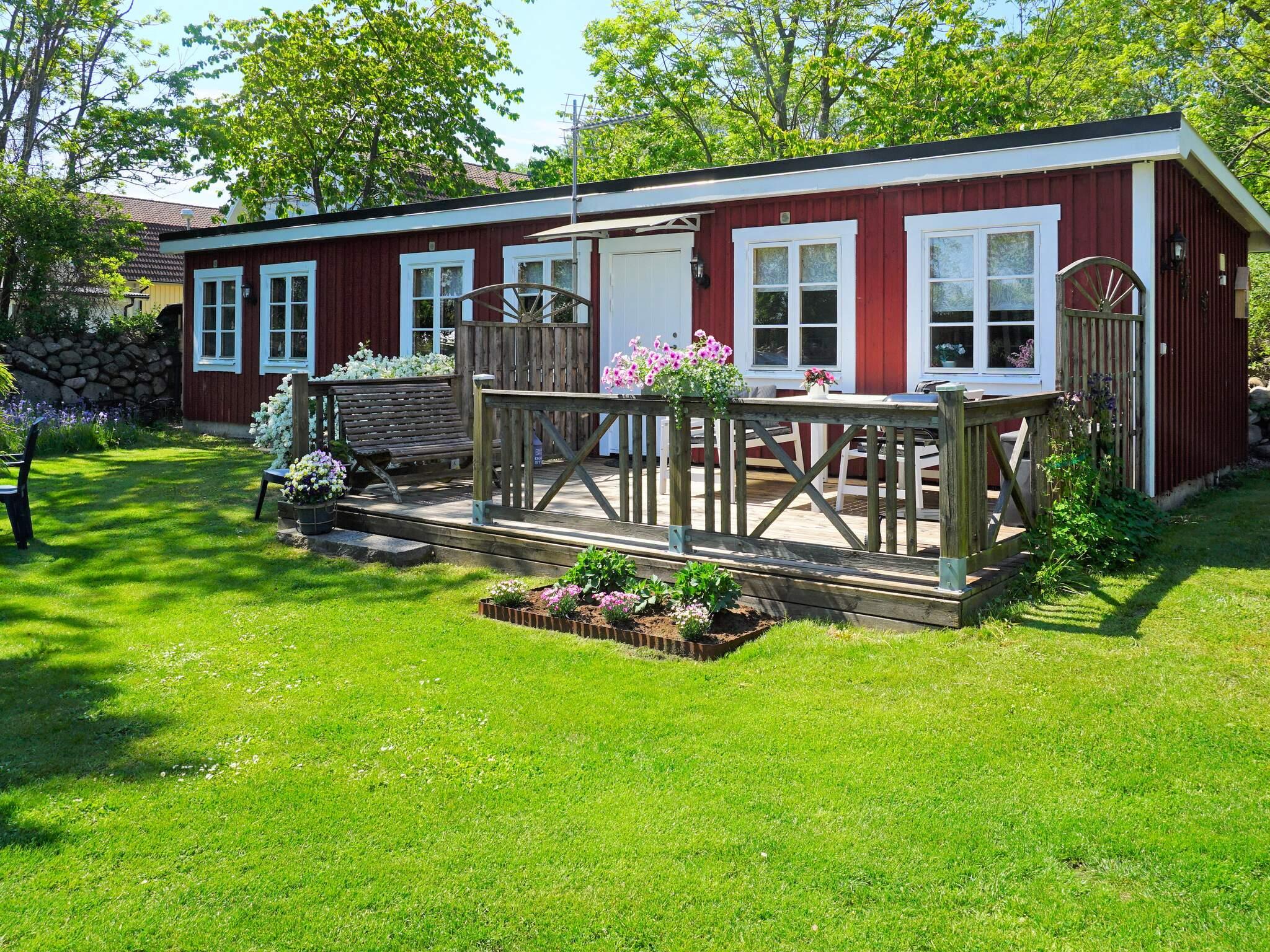 På denna gamla och grönskande fisketomt i Nogersund ligger denna stuga, eller annex, som i all enkelhet erbjuder det mesta som man kräver av ett boende på semestern. Här finns ett öppet kök med möblemang tillsammans med ett vardagsrum där man kan både sitta, äta och mysa i soffan. I stugan finns ett sovrum med en dubbelsäng och en enkelsäng men även en bäddsoffa i vardagsrummet. I badrummet finns dusch, tvättmaskin och torktumlare. På framsidan av stugan har man en härlig altan med grill och utemöbler.