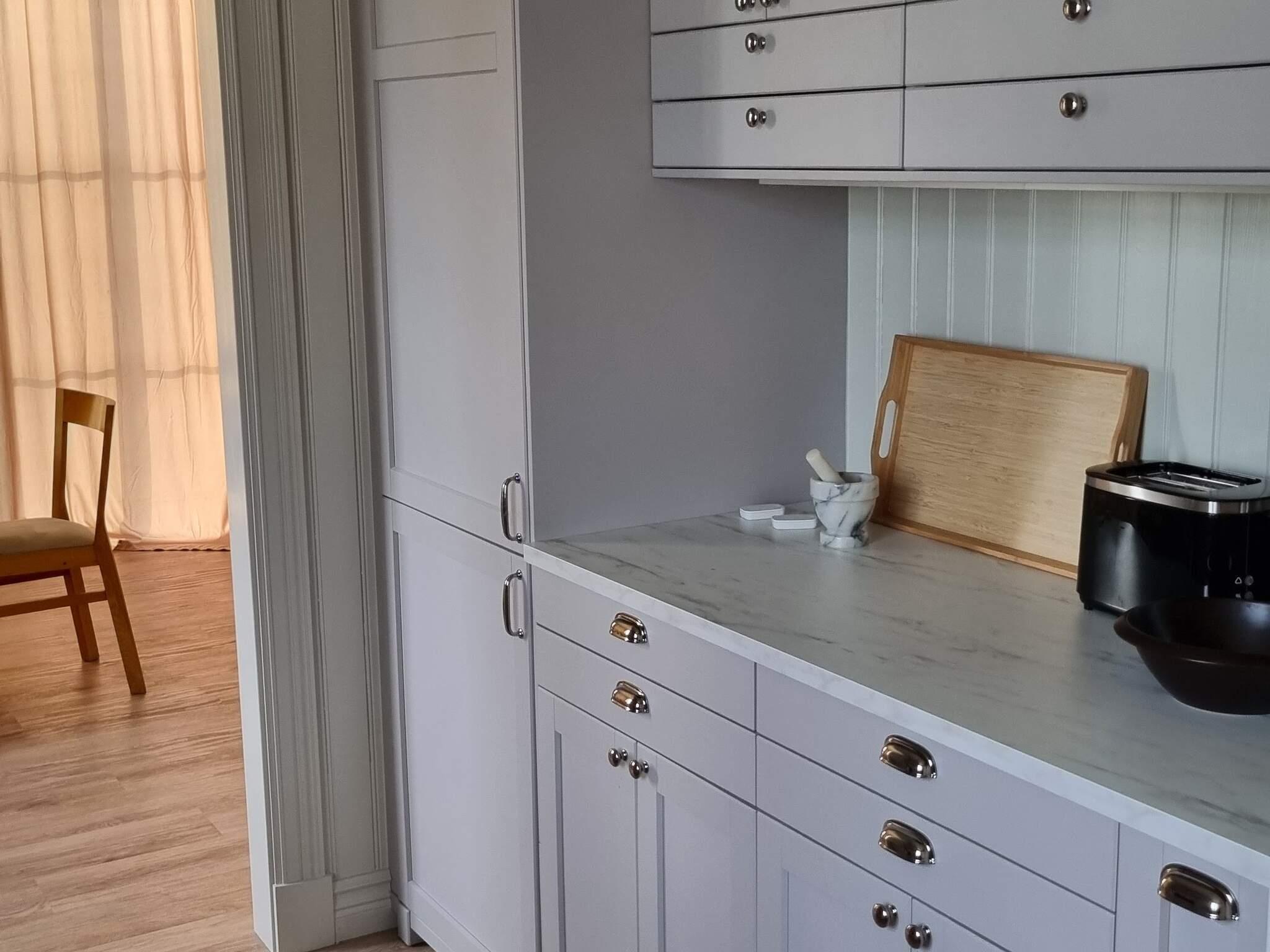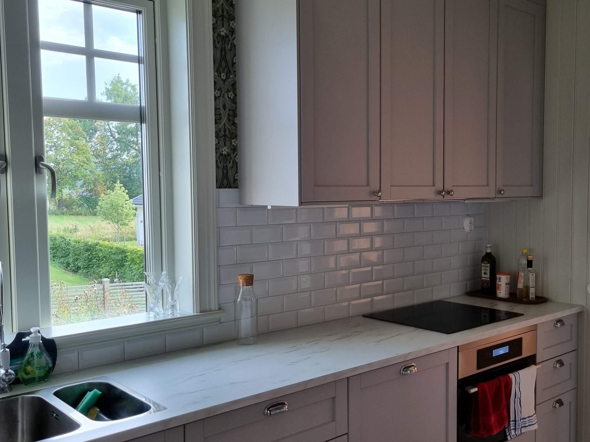 Køkken: El-komfur, ovn, køle-frys, opvaskemask., vaskemaskine