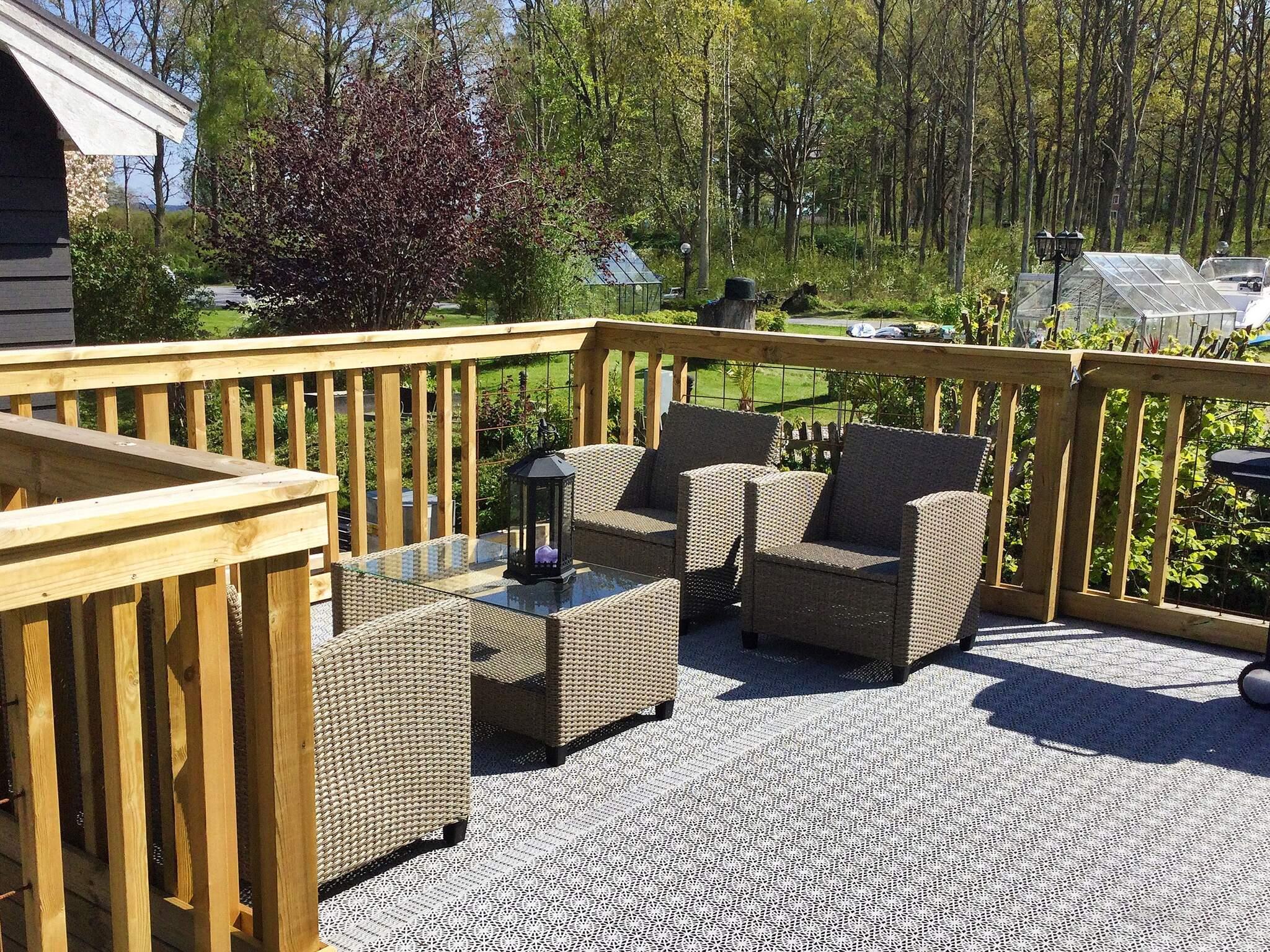 Den trevliga altanen är en skön plats att sitta och slappa på eller att sköta matlagningen på med hjälp av grillen, med en öl eller ett glas vin i handen. Det ljusa och trevliga vardagsrummet har en stor smart-TV. Kaminen ger ett trevligt intryck, men får ej användas.