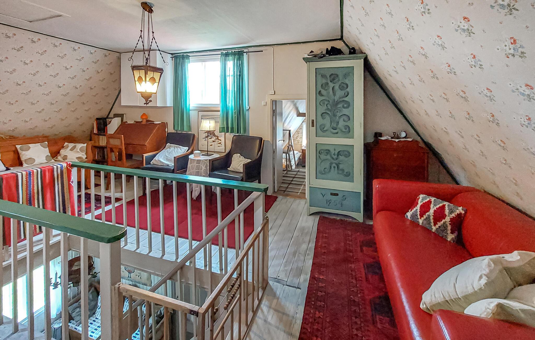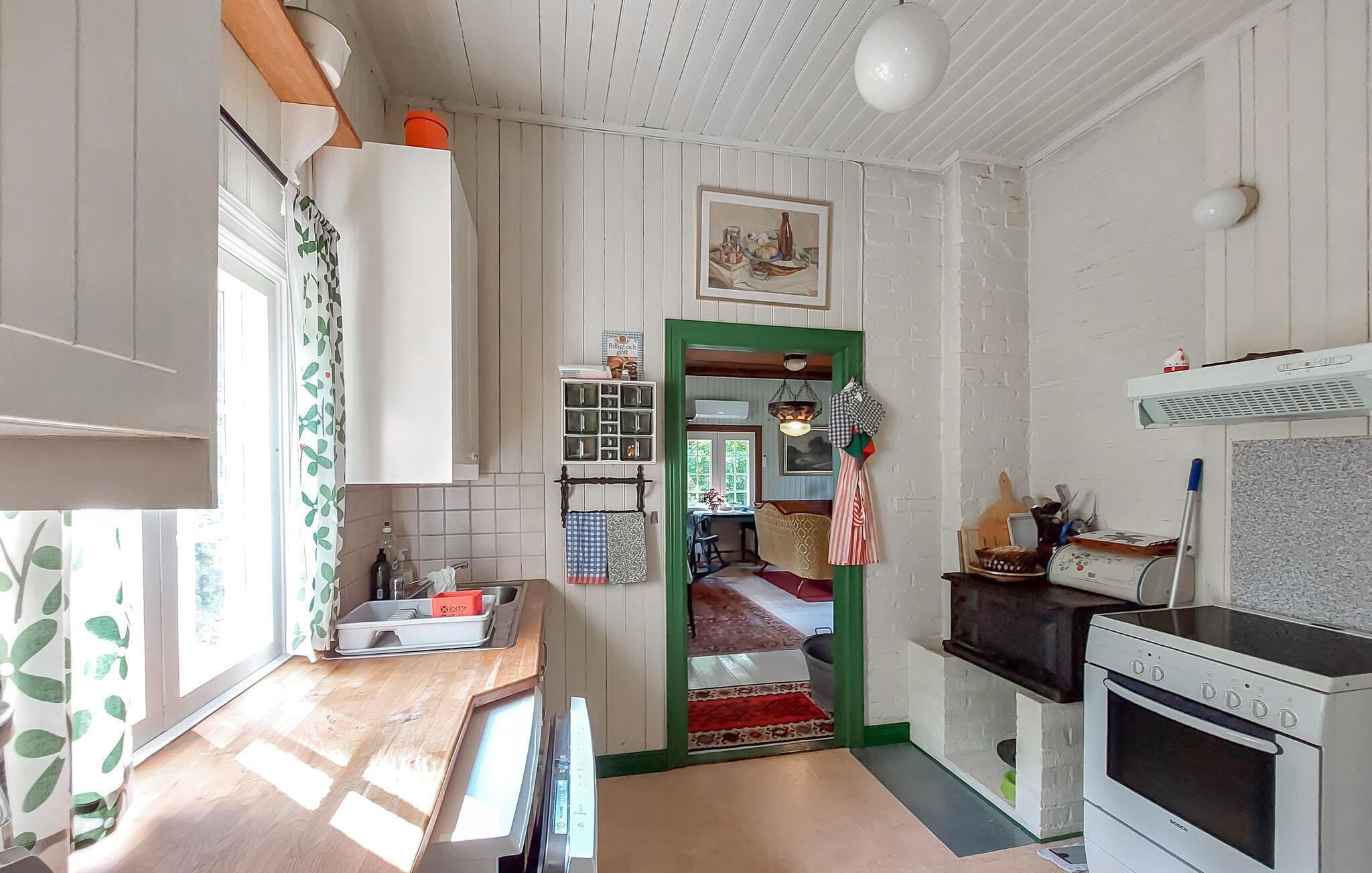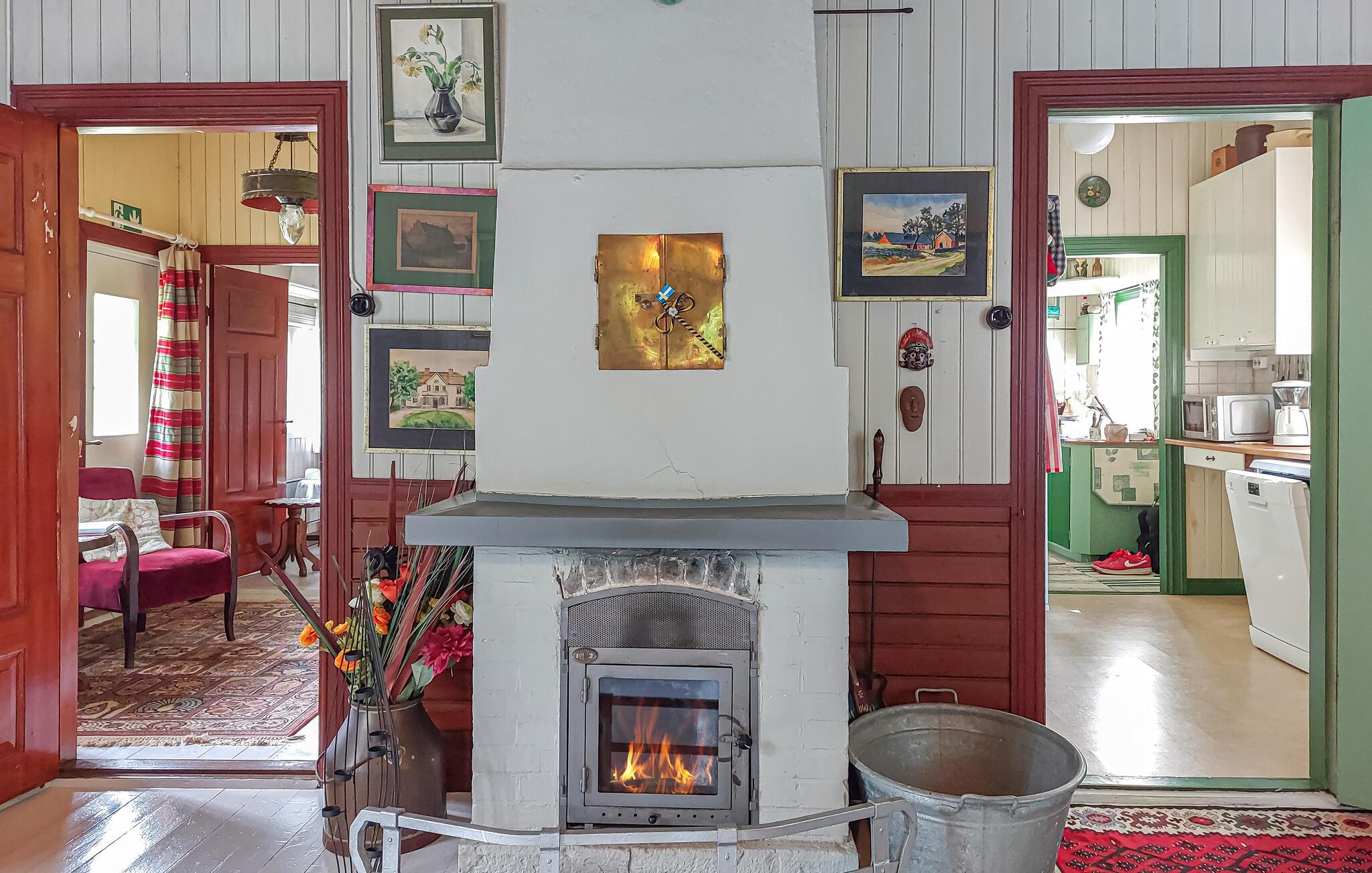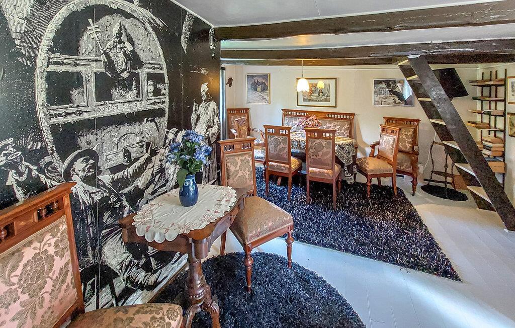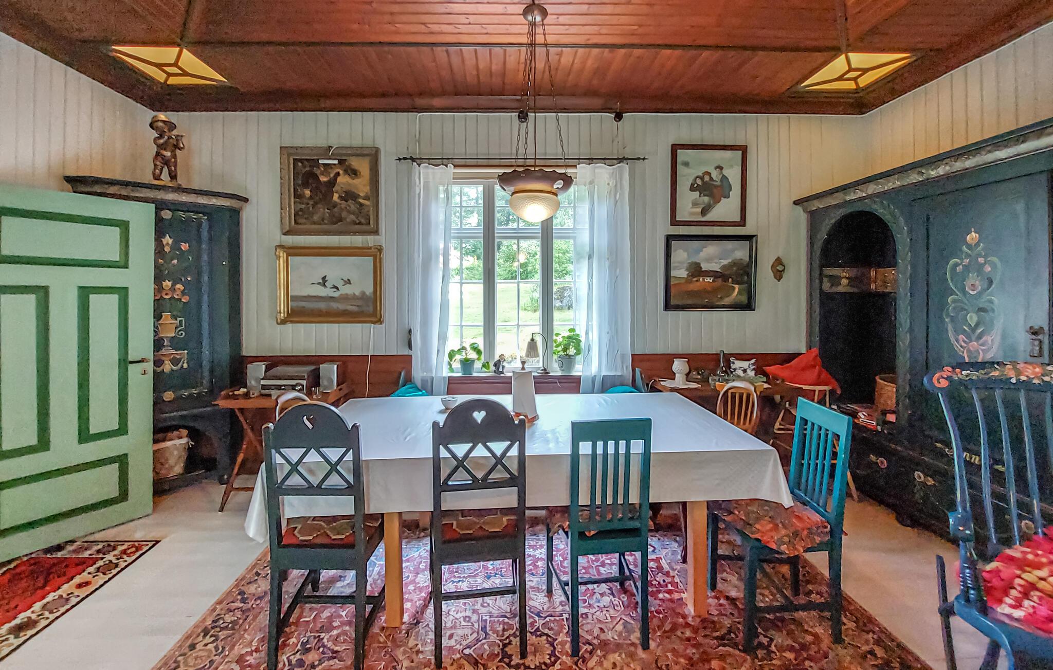 Den autentiske atmosfære i dette idyllisk beliggende arkitekttegnede hus lægger op til at slappe af og lade op. Et varmt trælook, rustikke møbler og en imponerende pejs skaber en hyggelig atmosfære, hvor I hurtigt vil finde jer selv i ferietilstand. Uanset om I lytter til god musik, bliver inspireret af kunstværkerne på væggene eller laver mad sammen – her sætter I tempoet for jeres dag.