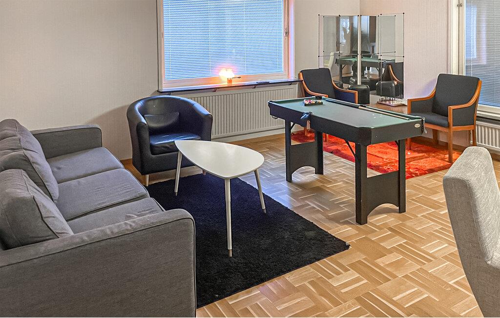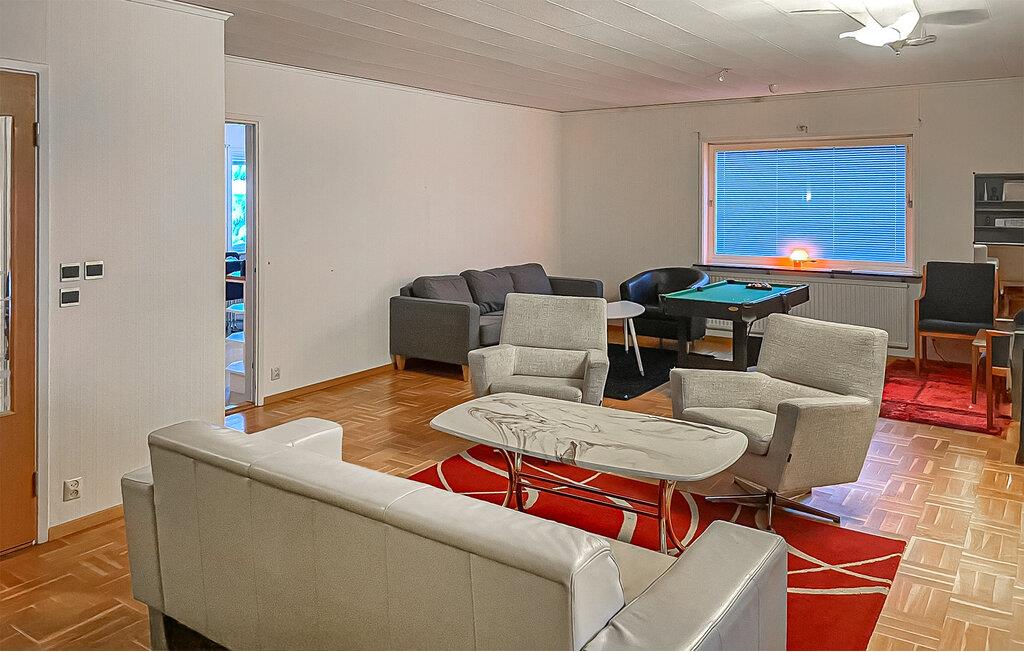 Den rolige beliggenhed og de forskellige faciliteter i dette feriehus giver jer den ideelle kombination af afslapning og underholdning. Opholdsstuen er moderne og komfortabelt indrettet. Føl jer godt tilpas på en af ??de mange sofaer og andre siddepladser, og nyd filmaftener sammen i den interne biograf. Spil et spil billard eller slap af i det hyggelige opholdsområde med pejs. Huset har desuden et rummeligt køkken med spiseplads. Et fitnessrum er også tilgængeligt, hvis I ønsker at holde jer aktiv, mens I er på ferie.