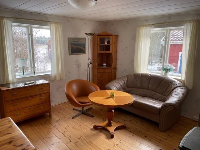WiFi med fibertilslutning og tv med gratis svenske kanaler. Her er køleskab og en mindre fryser samt et ekstra køleskab og en fryser i et opbevaringsrum. Her må ikke være dyr i huset, og huset er et ikke-ryger hus. Huset ligger ved siden af hovedbygningen på gården (ejerens hjem), og derfra er der omkring 100 m til den næste nabo.