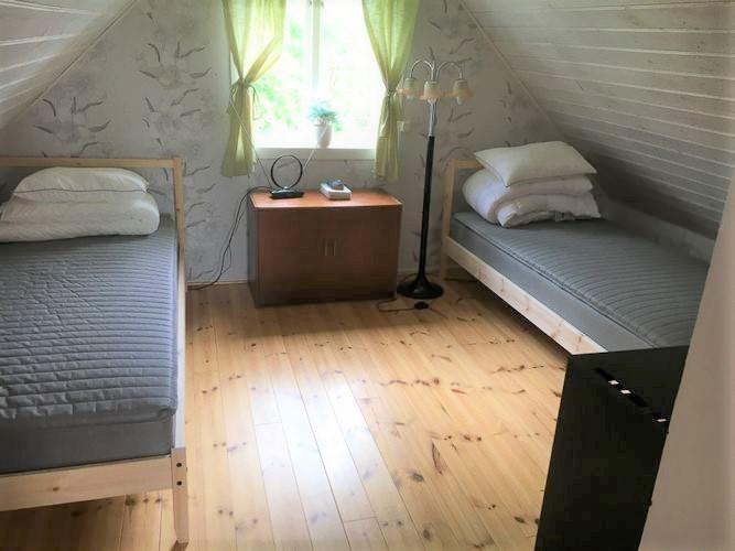 Overetagen er en hems, hvor der står 3 enkeltsenge. Derudover er der en gæsteseng til en 4. person, hvis der er brug for det.