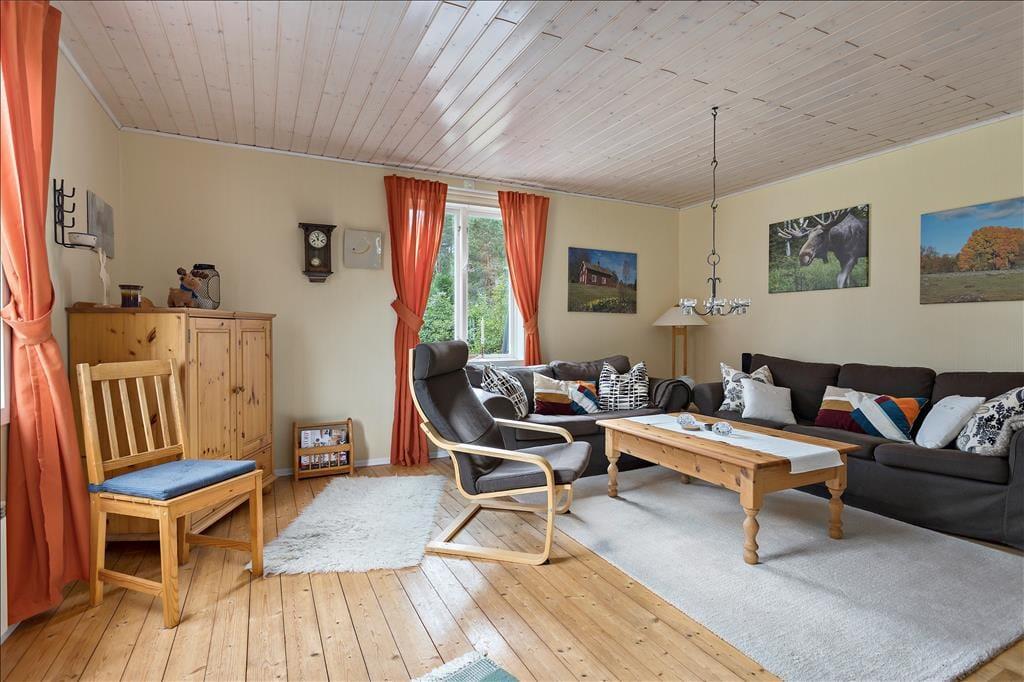Huset her er på 90 m², og er blevet bygget i 1895. Sidenhen er huset blevet grundigt renoveret og moderniseret. I stueetagen er der en stue med en flot kakkelovn, tv og Blu-ray. Et meget veludstyret køkken med el-komfur og gammeldags brændekomfur, mikroovn, opvaskemaskine, køleskab med fryser og et badeværelse med håndvask, toilet, bruser, vaskemaskine og plads til at stryge tøj. Ovenpå er der endnu et toilet med håndvask, et soveværelse med dobbeltseng, et soveværelse med dobbelt sovesofa og et sovekammer bag en træbeklædt væg, med en køjeseng. Huset har varmt og koldt vand, gratis Wi-Fi og kan opvarmes elektrisk. Desuden er der en åben veranda, havemøbler og grill, bordtennisbord, en barneseng og en barnestol, samt seks cykler og en kano - dog ingen redningsveste. I udhuset er der en sauna og plads til at slappe af.