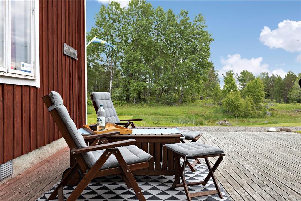 Ca. 25 km nordvest for Nybro, midt i det såkaldte "Glasrige", lidt udenfor den lille landsby Gullaskruv, ligger dette sommerhus. Huset ligger alene på en 4.000 m² stor grund omgivet af skov. Der er en lille sø med bådsbro cirka 300 fra huset. I Orranäsasjön, ca. 7 km fra huset, ligger der et dejligt badeområde. Indkøbsmuligheder og posthus findes i byen Orrefors, ca. 10 km væk. Større supermarkeder og hæveautomater findes i Nybro, ca. 25 km derfra.