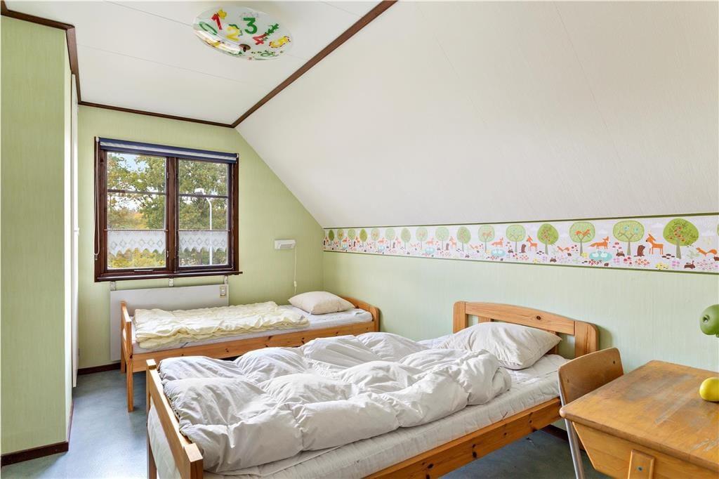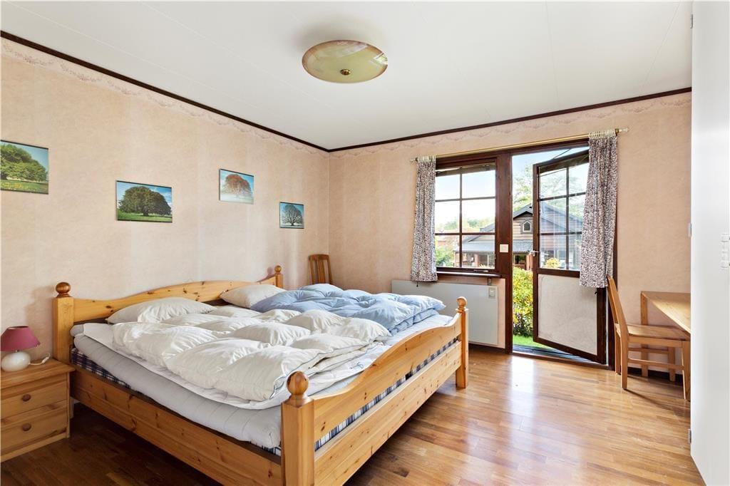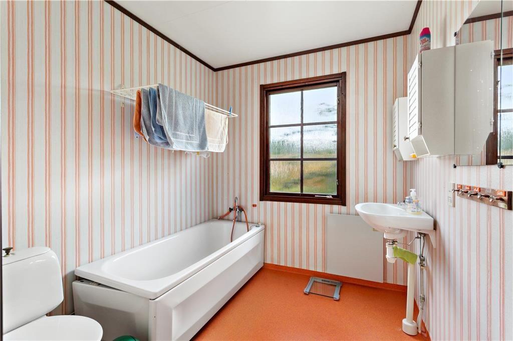 Det 140 m² røde sommerhus blev bygget i 1976 og byder plads til to familier. I stueetagen er en stor stue med siddehjørne, tv, kamin og spisebord. Køkkenet er udstyret med el-komfur, køleskab med fryser, mikroovn, opvaskemaskine og spisebord. I bryggerset står vaskemaskine, tørreskab og en kummefryser, her er også en ekstra bruseniche. Soveværelse med dobbeltseng og et stort badeværelse med badekar og toilet. På 1. sal er en åben stue med udgang til en stor balkon. Stuen er indrettet med dobbelt sovesofa, cd-afspiller og tv. Udover et gæstetoilet, er her også tre soveværelser, et med dobbeltseng og de to andre værelser med to enkeltsenge i hver. Huset har varmt og koldt vand og kan opvarmes med el. Huset har både en overdækket og en åben terrasse, med udsigt til haven. Derudover høre en lille sandkasse, havemøbler, en grill og en kano til huset.